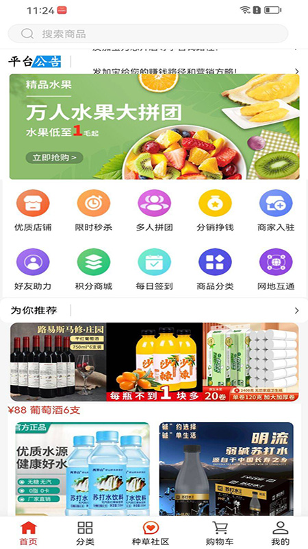 平台APP具备一套全新的产销配套、供需一体的新商系统,此系统涵盖送券、积分、秒杀、助力、拼团、会员、共享股东、抽奖等众多实用功能,使用户能够以更低的成本享受到物美价廉的产品。