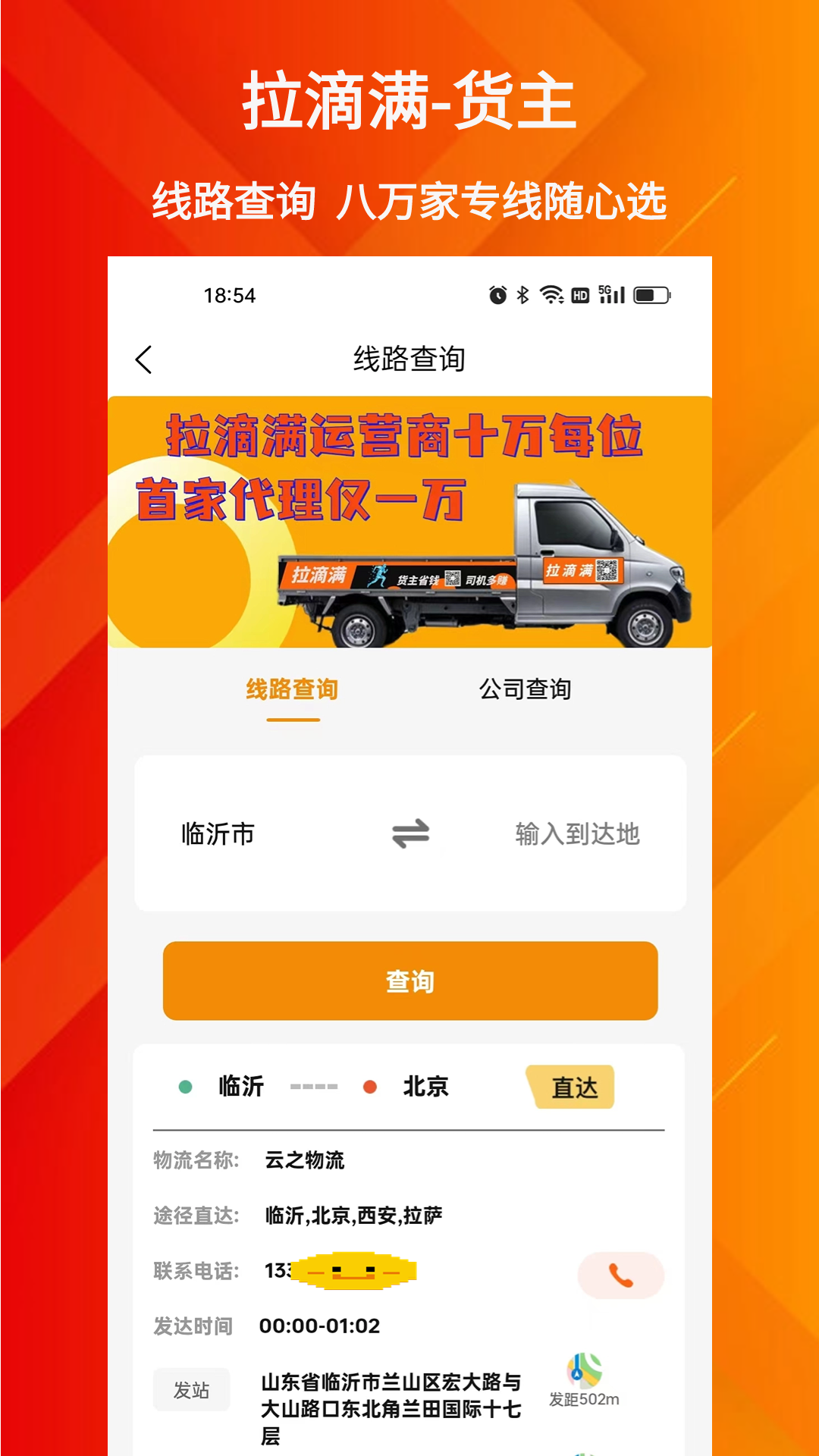 拉滴满为货主提供了便捷的订单查询功能,只需一键操作,就能够查询订单,并且订单的全程路由信息都可以可视化查看。