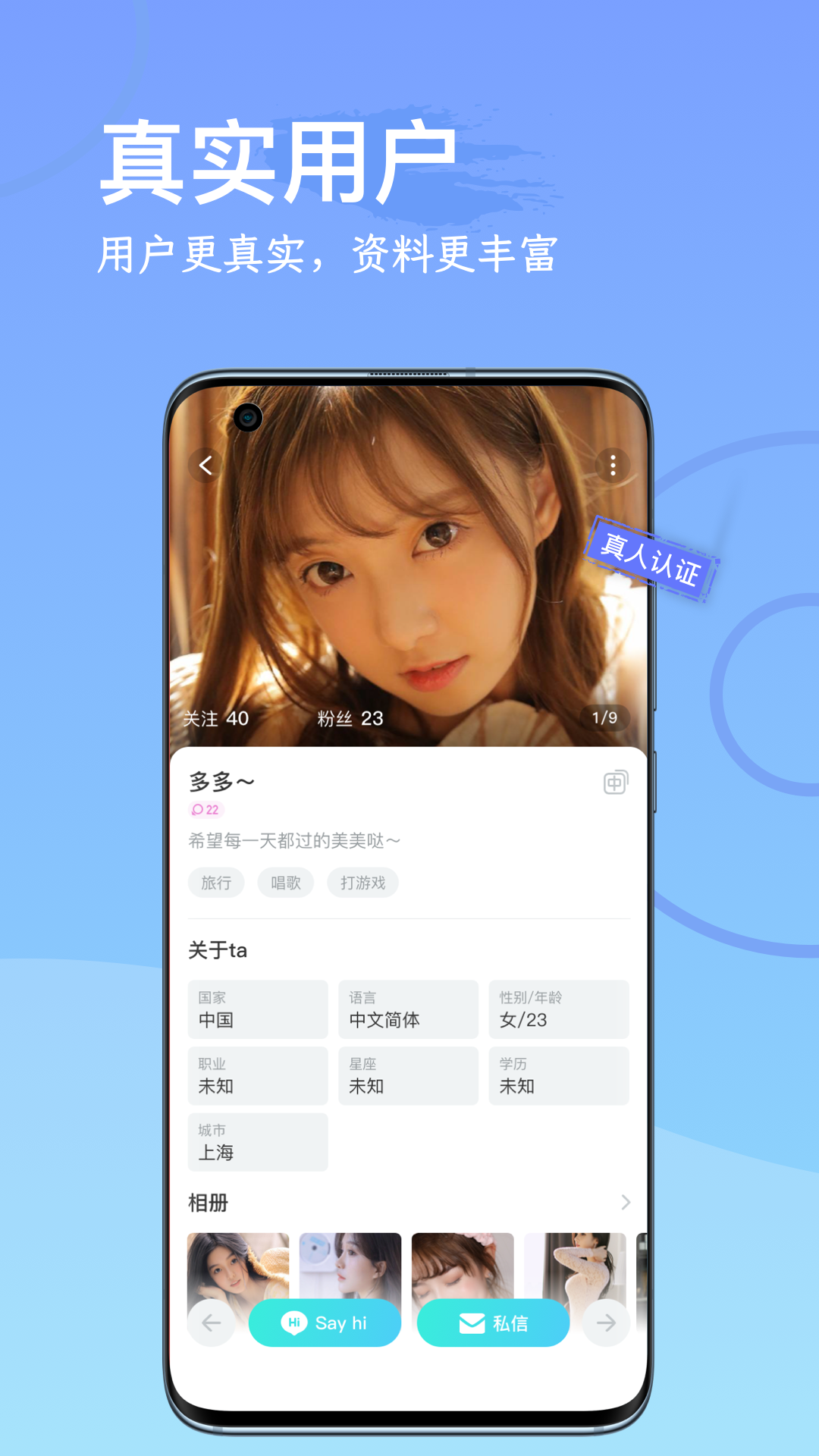 【真人交友】如果怀疑对方不是真正的外国人,你可以直接邀请进行视频通话,通过视频聊天交友的方式,让聊天交友更加直接、真实。