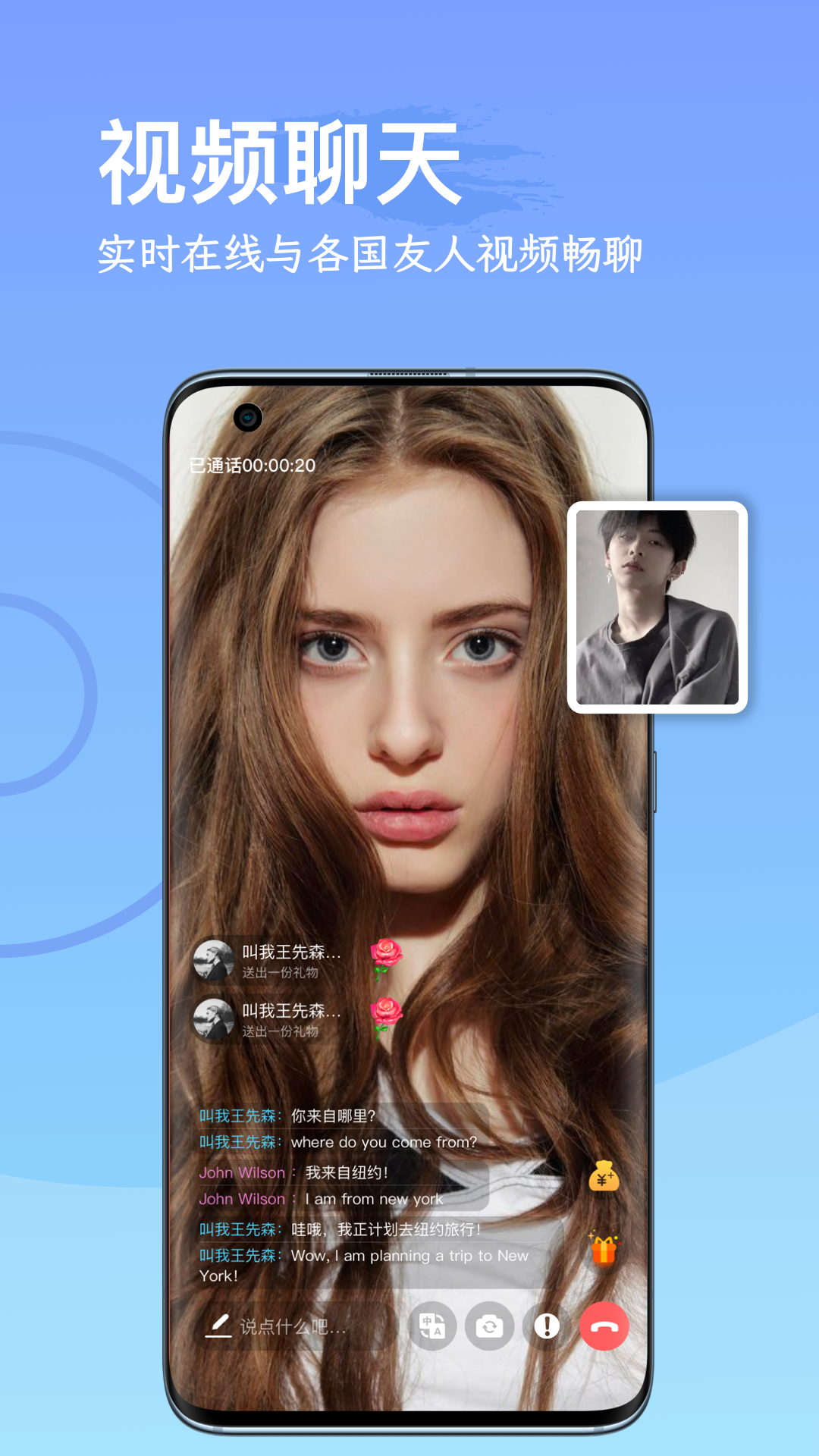 【视频聊天】能便捷地与国外友人进行文字、视频、语音聊天。