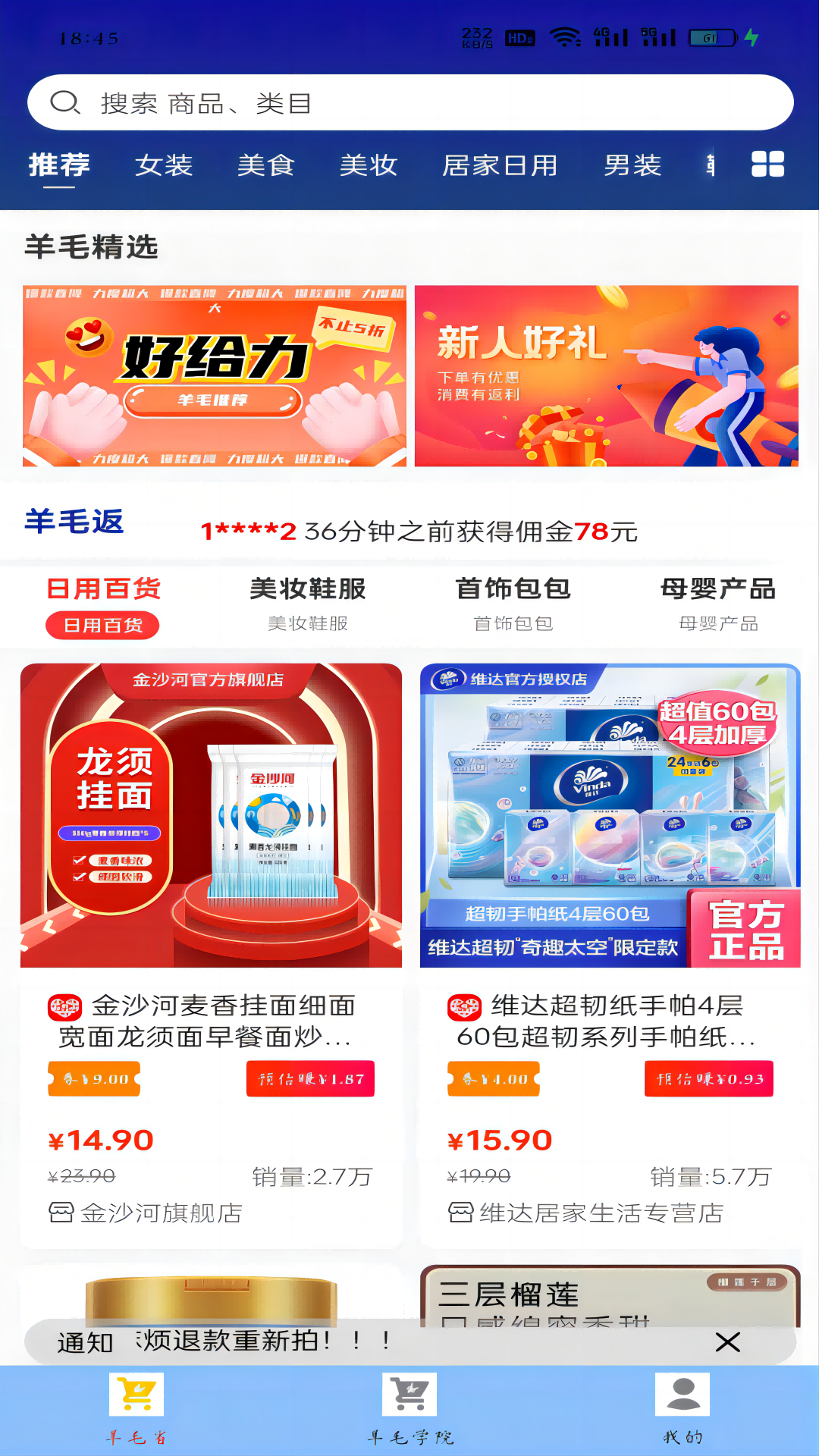 羊毛返利是国内处于领先地位的全场景导购平台,其主要专注于三个方面:购物返利、优惠券的发放以及提供生活优惠。