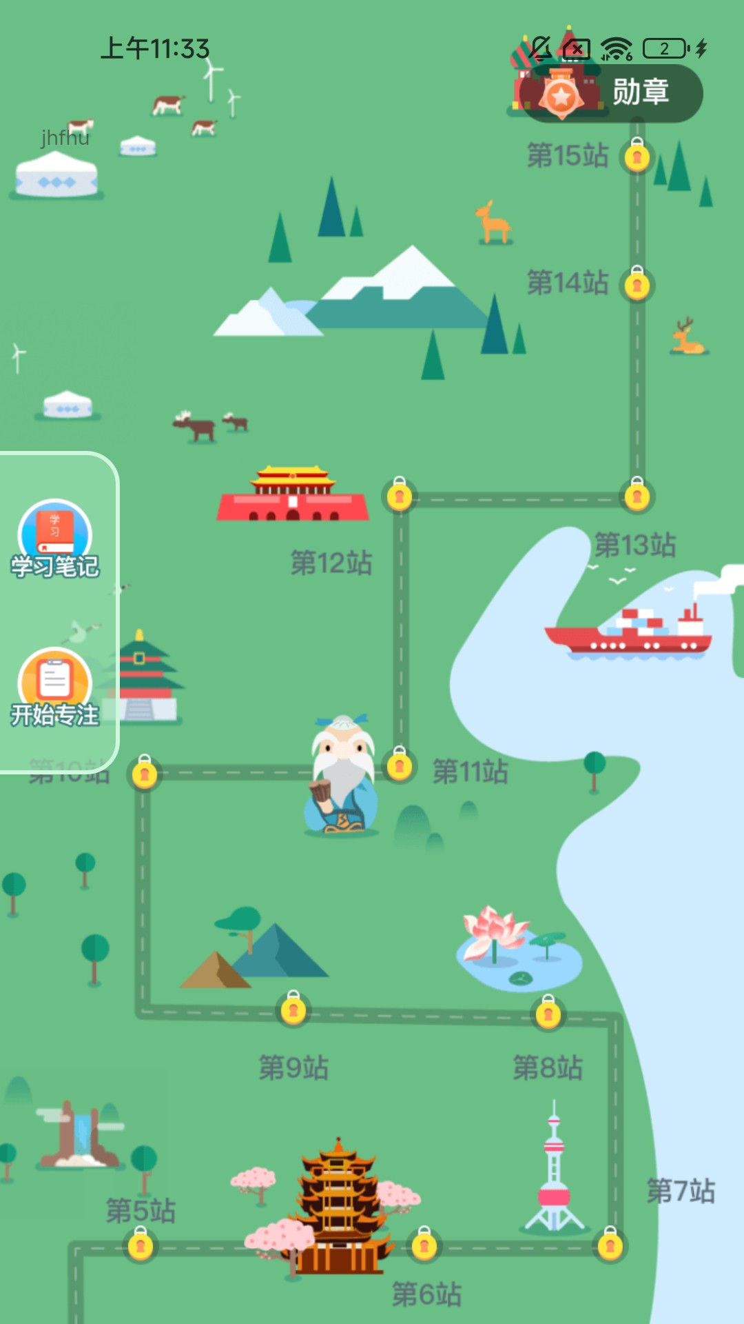 其三,专注地图。该app设有专注地图功能,用户借助地图打卡的方式,能够增加学习的趣味性。