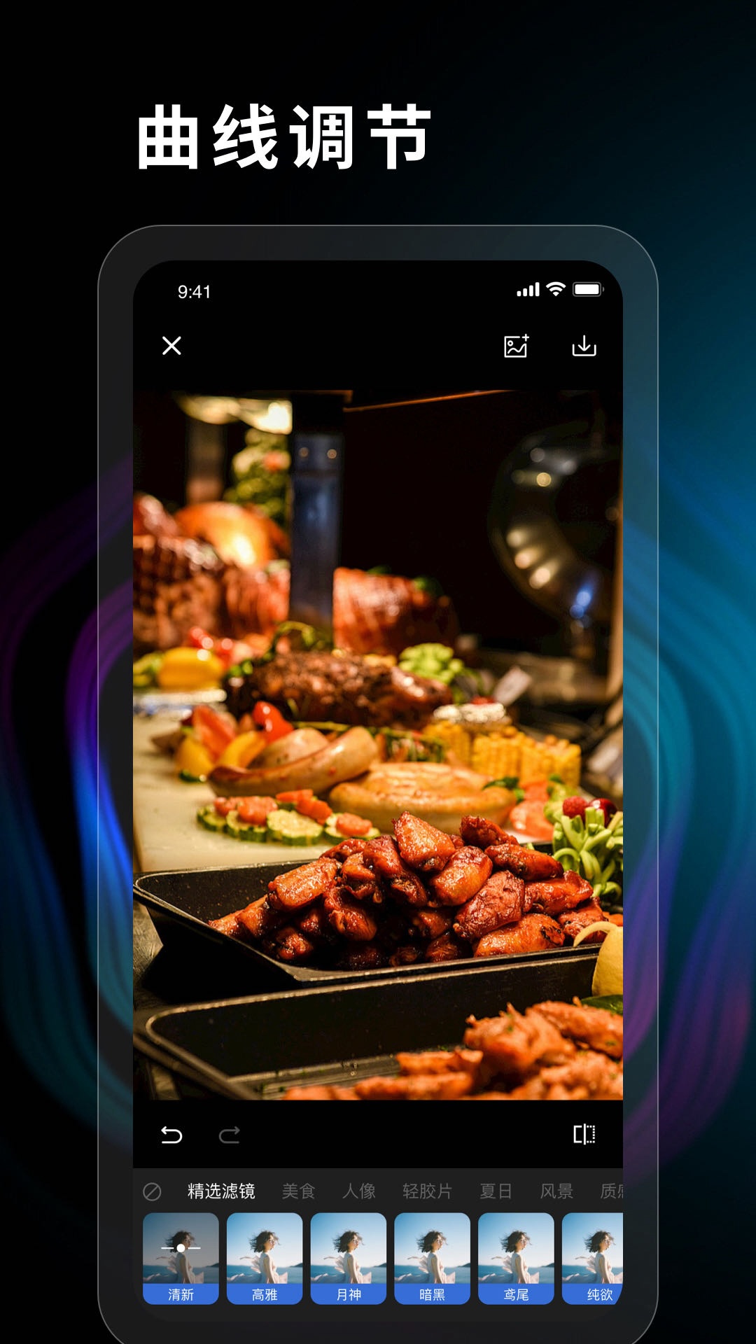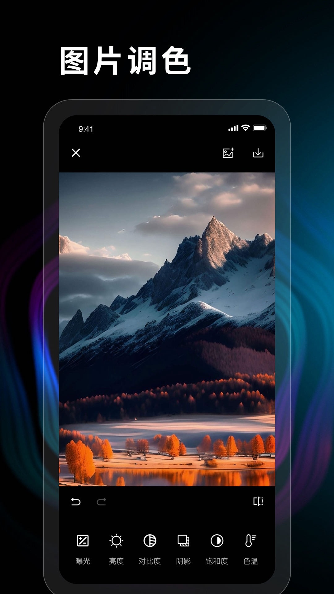 【图片调色】专业调色工具,无损修图。从曲线,曝光、亮度、对比度、饱和度、色温、高温、锐化、钝角、暗角等各个方位对照片进行修图调色。色彩增强,黑白图上色,图片清晰度调节,调出你个人风格的滤镜大片。