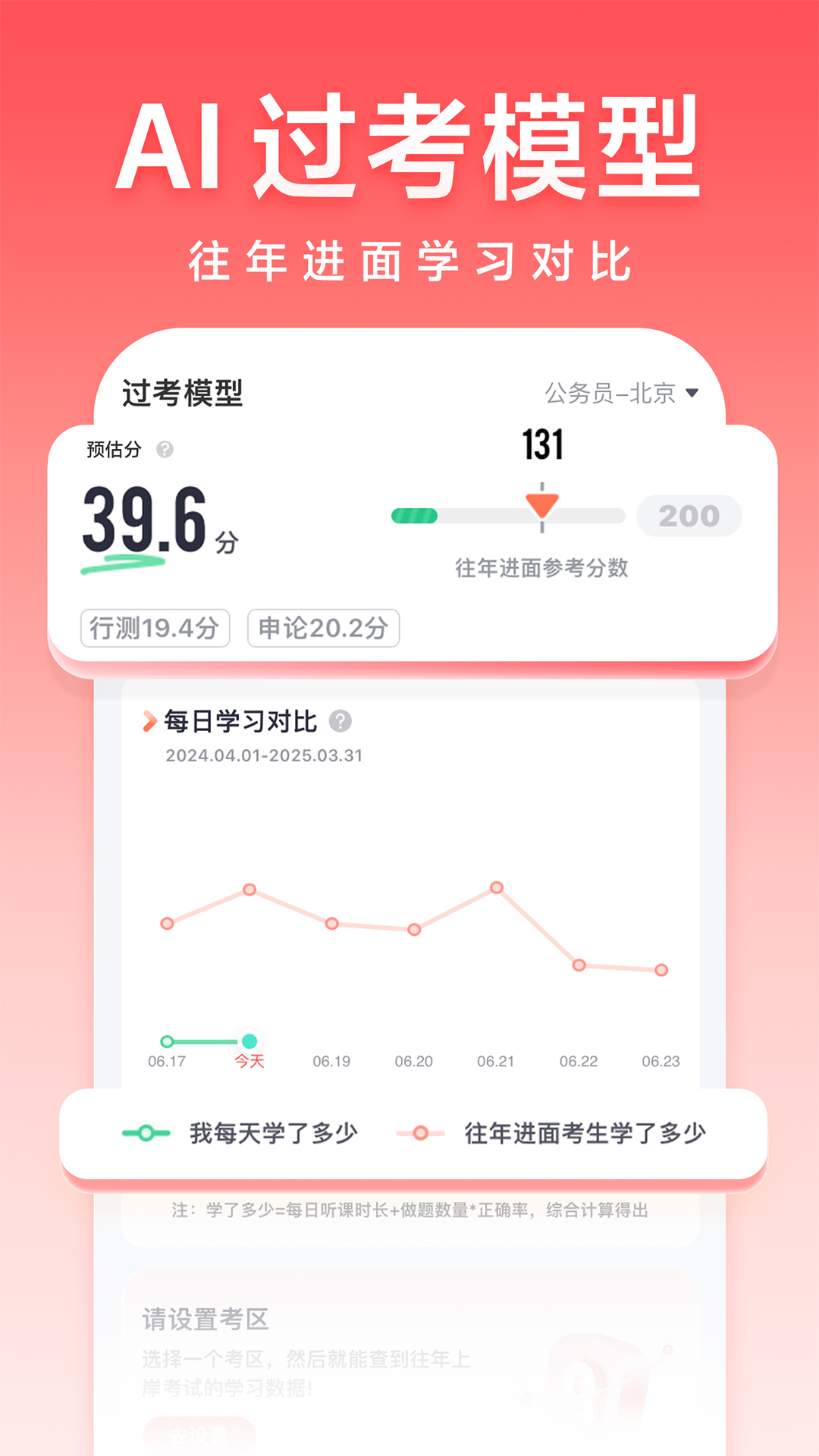 该模型通过对考生大数据、历年考试规律、知识点难易程度以及考查频次进行分析,探寻过线要素。同时,参考同考区、岗位等往年进面学员的学习行为数据,从而指导学员有效把控学习进度与学习效果。