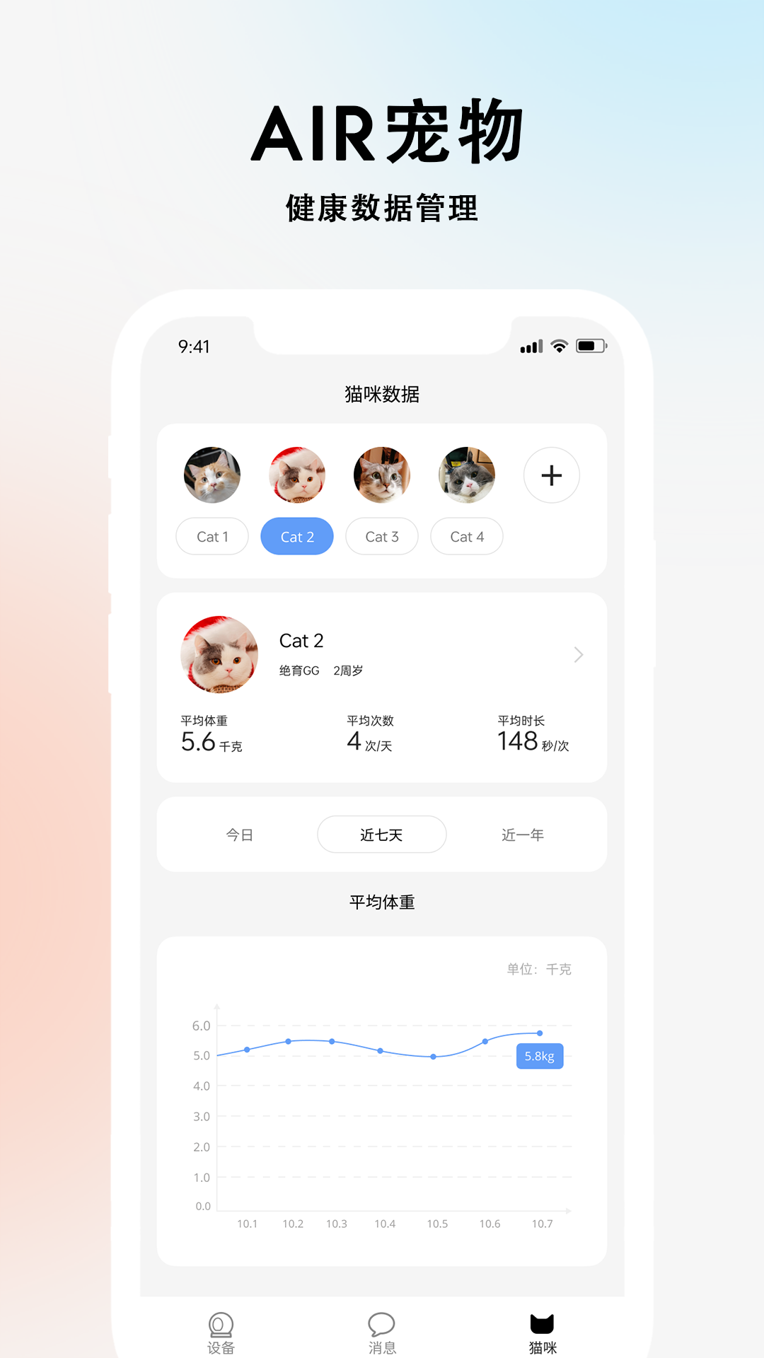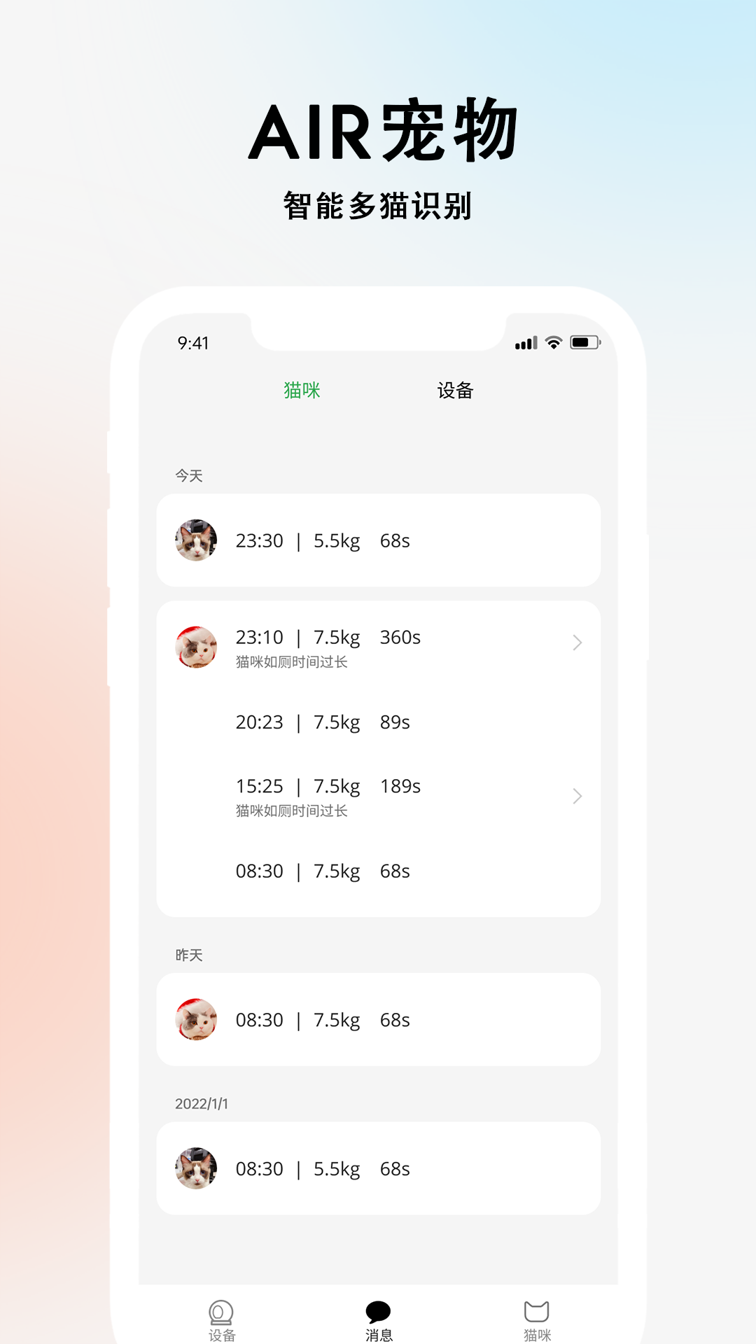 AIR宠物是AIRROBO推出的一款APP哦,它需要和AIRROBO智能猫砂机一同使用。这个APP具备不少很棒的功能呢,像是可以远程操作并且可视化,能够智能识别多只猫咪,还能进行健康数据管理,而且支持自定义智能设置。这么实用又有趣的APP,赶快下载来体验一下吧!