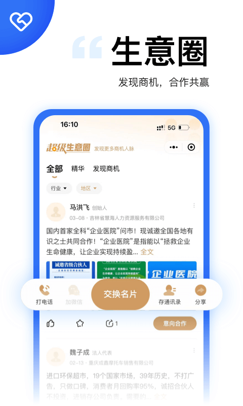 【高端人脉】:能够与实力老板在线交流,只需一键即可关注并约谈,轻松高效地打通优质人脉资源。