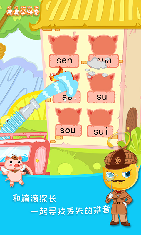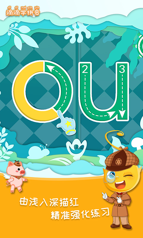 针对幼小衔接阶段的拼音学习,将宝贝需要掌握的单韵母、复韵母、声母等融入到精心设计的侦探故事之中。在轻松有趣的故事和游戏中自然掌握拼音。