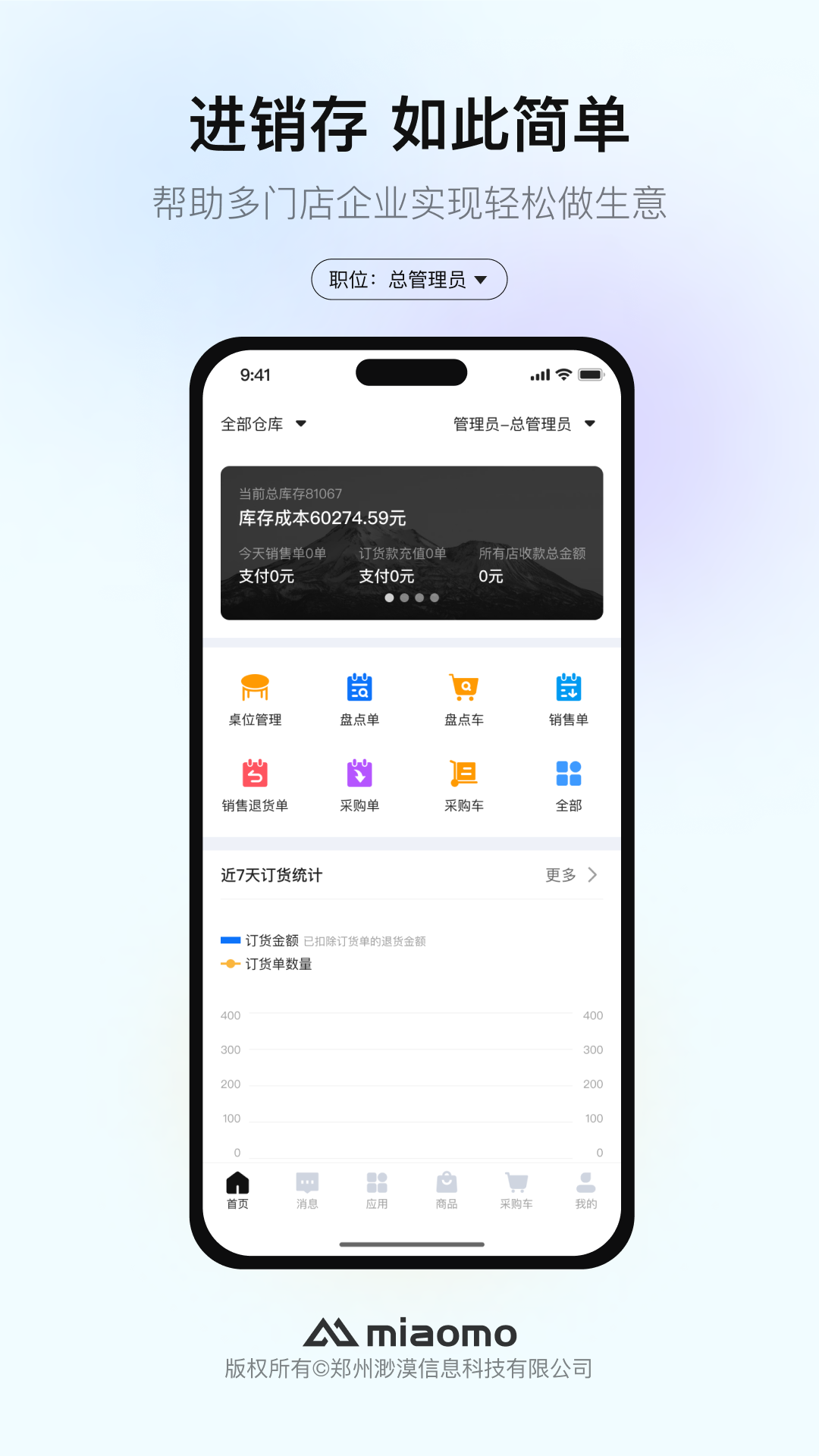便捷的App移动办公能让您随时掌握库存变化,手机盘点、库存预警等功能将让您的日常工作便捷高效。