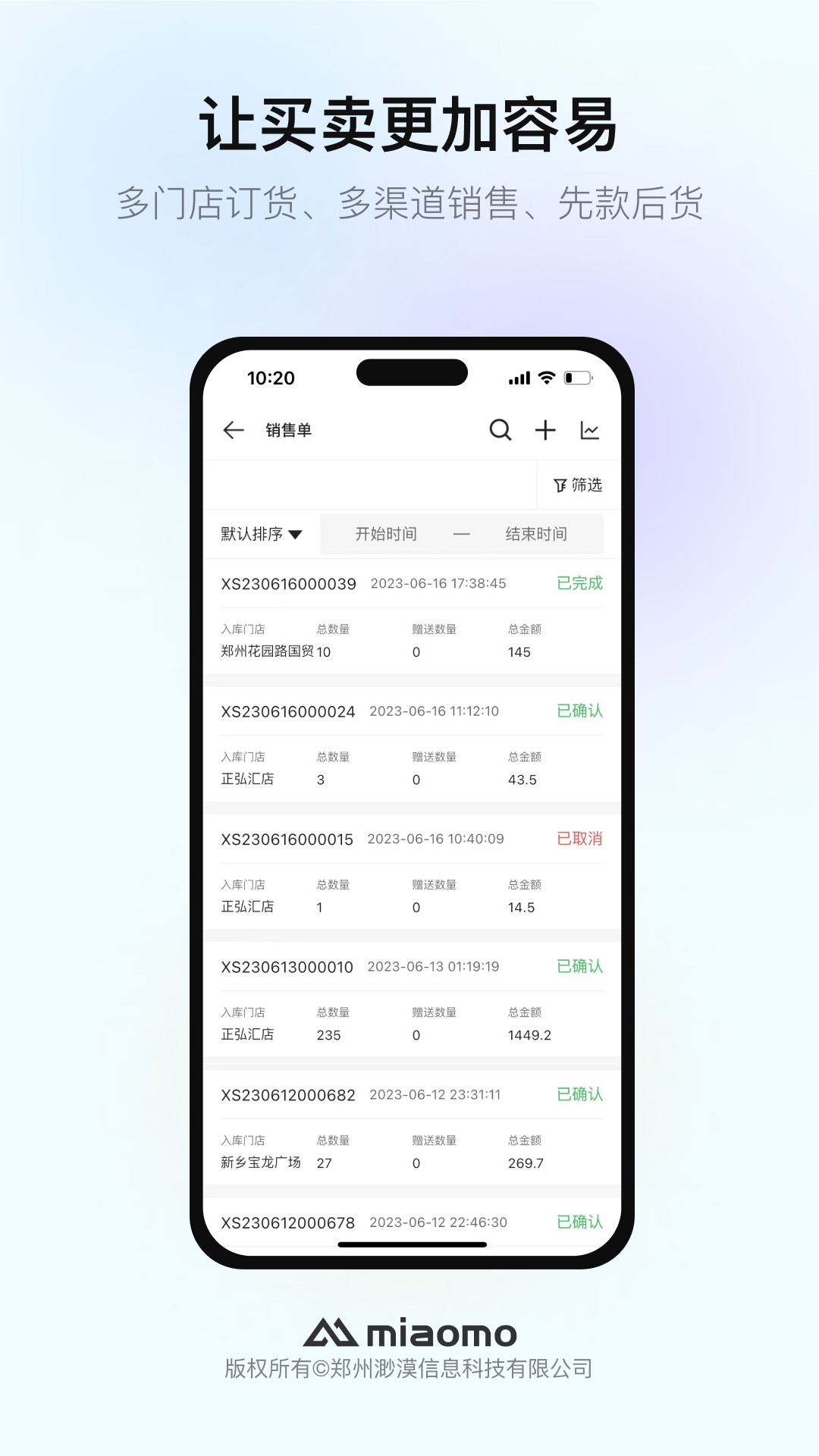渺漠新零售ERP系统软件是郑州渺漠信息科技有限公司面向小微企业精心打造的全方面的进销存ERP软件系统,尤其适合品牌连锁门店型企业对分布全国的加盟门店进行经营数据管理和营销助力,真正实现新零售概念在企业的实施落地。