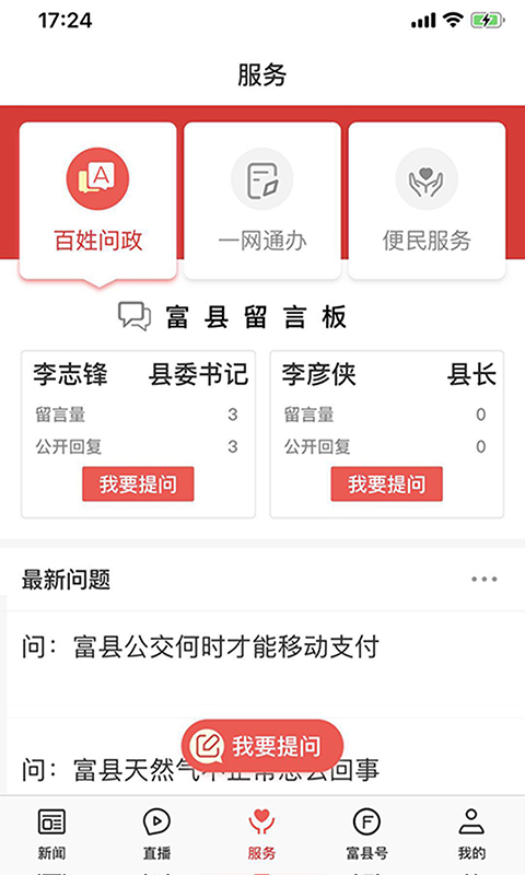 “富县融媒”手机APP作为富县融媒体中心主办的“新闻+政务+服务”综合平台,是权威的舆论宣传主阵地。开设了新闻、直播、电视、广播、服务、“爱富县”等栏目,整合了县域内网站、微信、微博、短视频等自媒体和部门、镇(办)、社区、村组政务服务资源。用户可通过客户端,了解富县政治、经济、民生、服务等方面的动态,同时提供各种便民服务