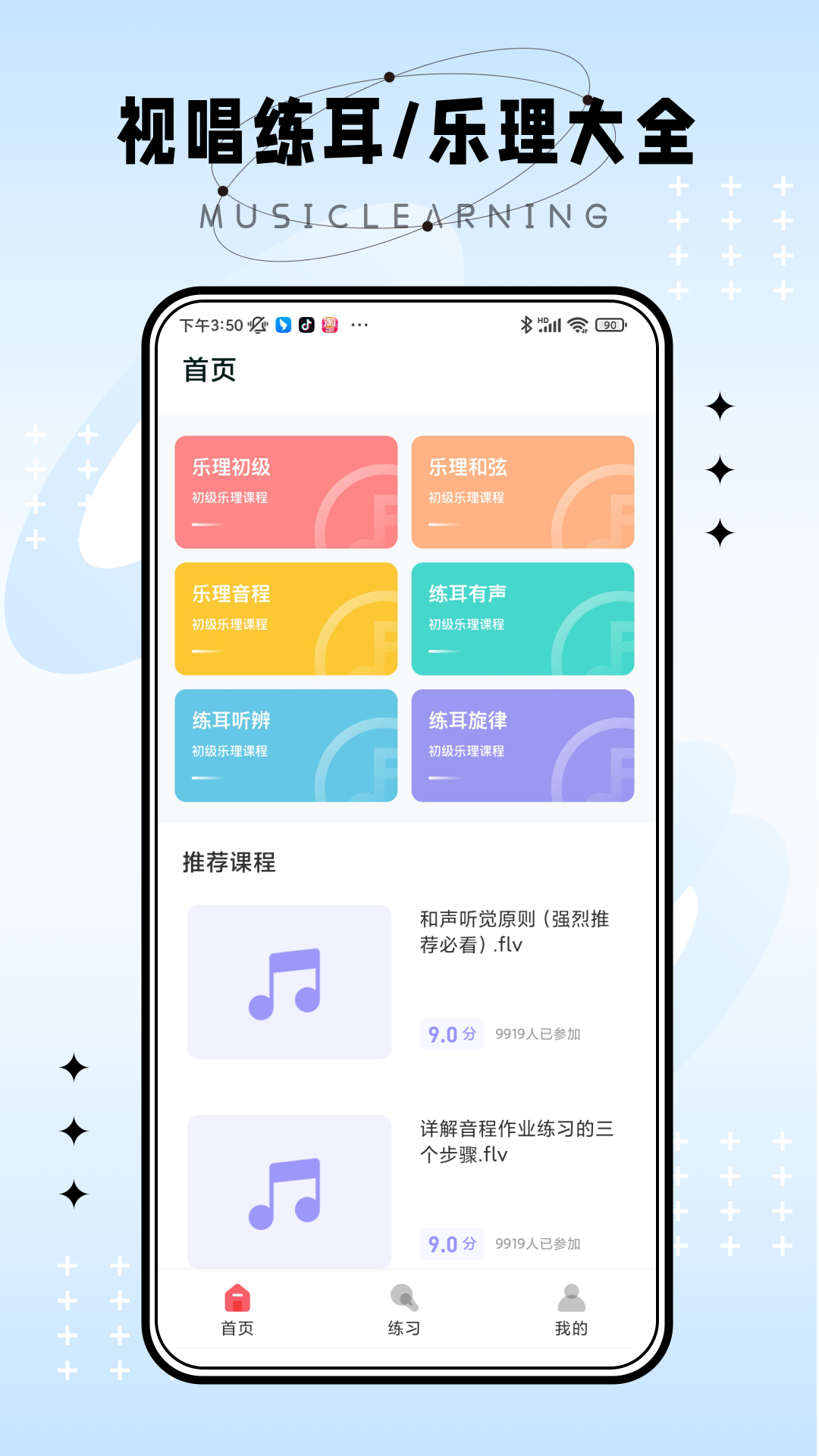 【视唱练习】这里有丰富的课程教学,涵盖乐理和弦、乐理课程、练耳旋律以及听辨知识等多个方面。
