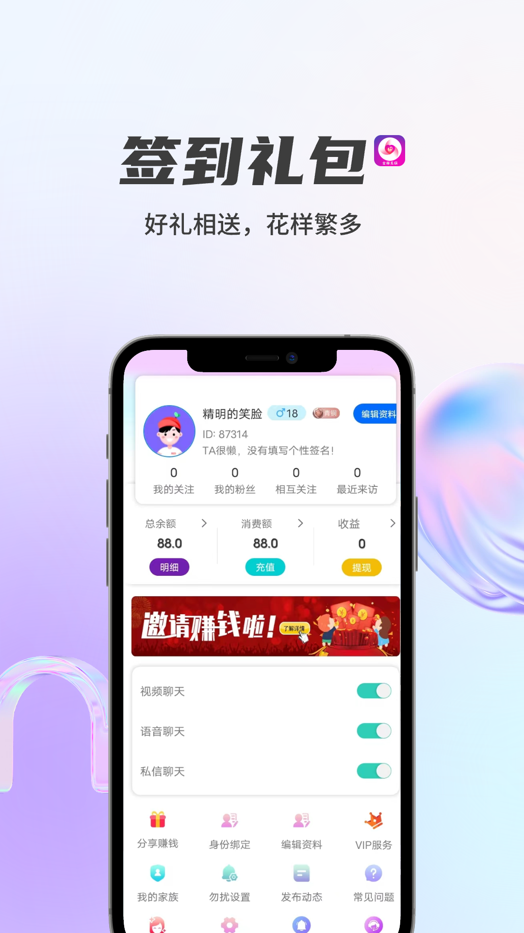 【视频聊天】快速开启聊天,真人在线畅聊,真实的互动带来真正的心动感觉;