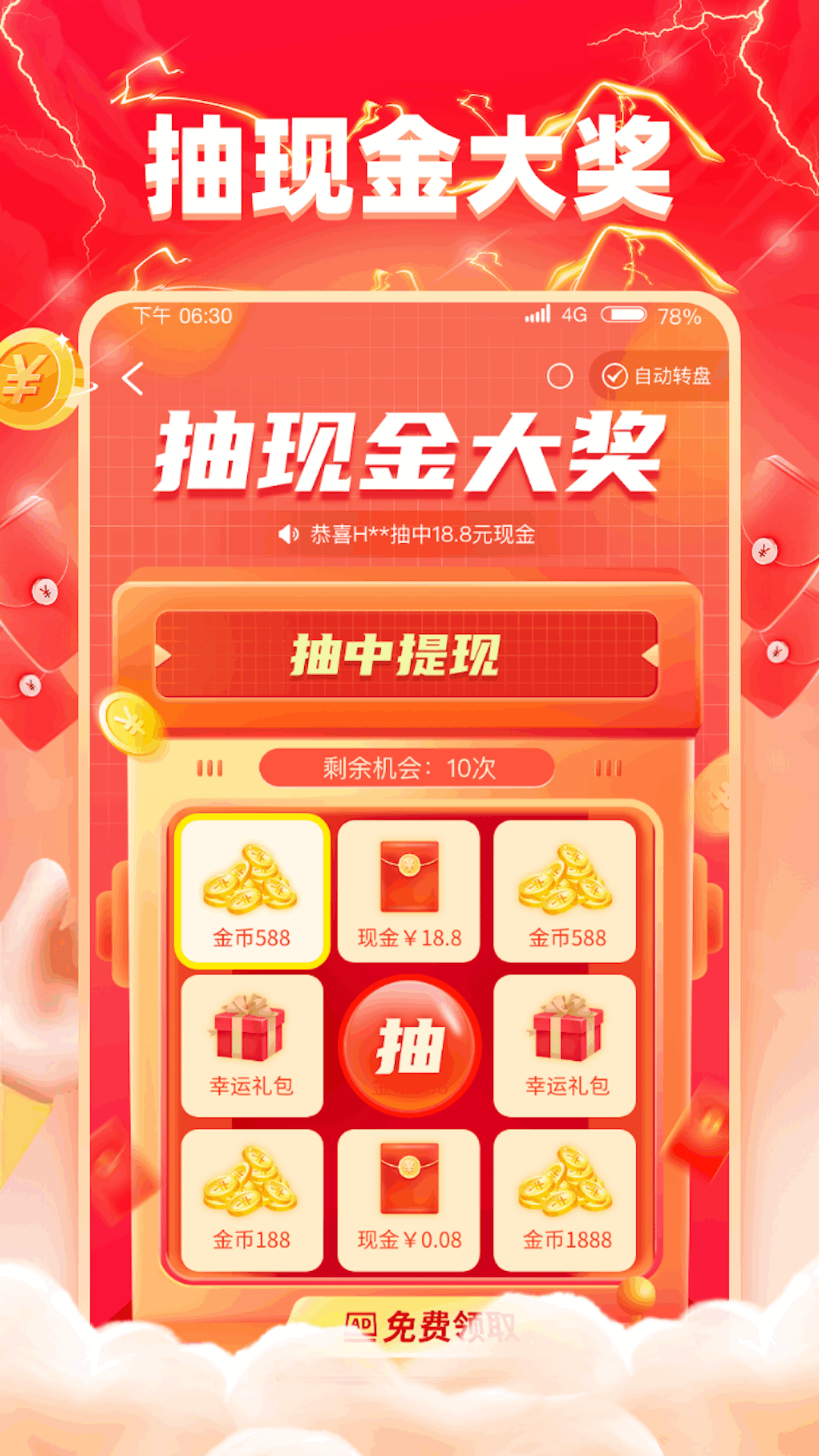 石榴充电提供了多种趣味环节,如天天抽红包、限时红包雨以及大富翁等,让用户在做任务的同时也能领取丰厚的红包奖励。