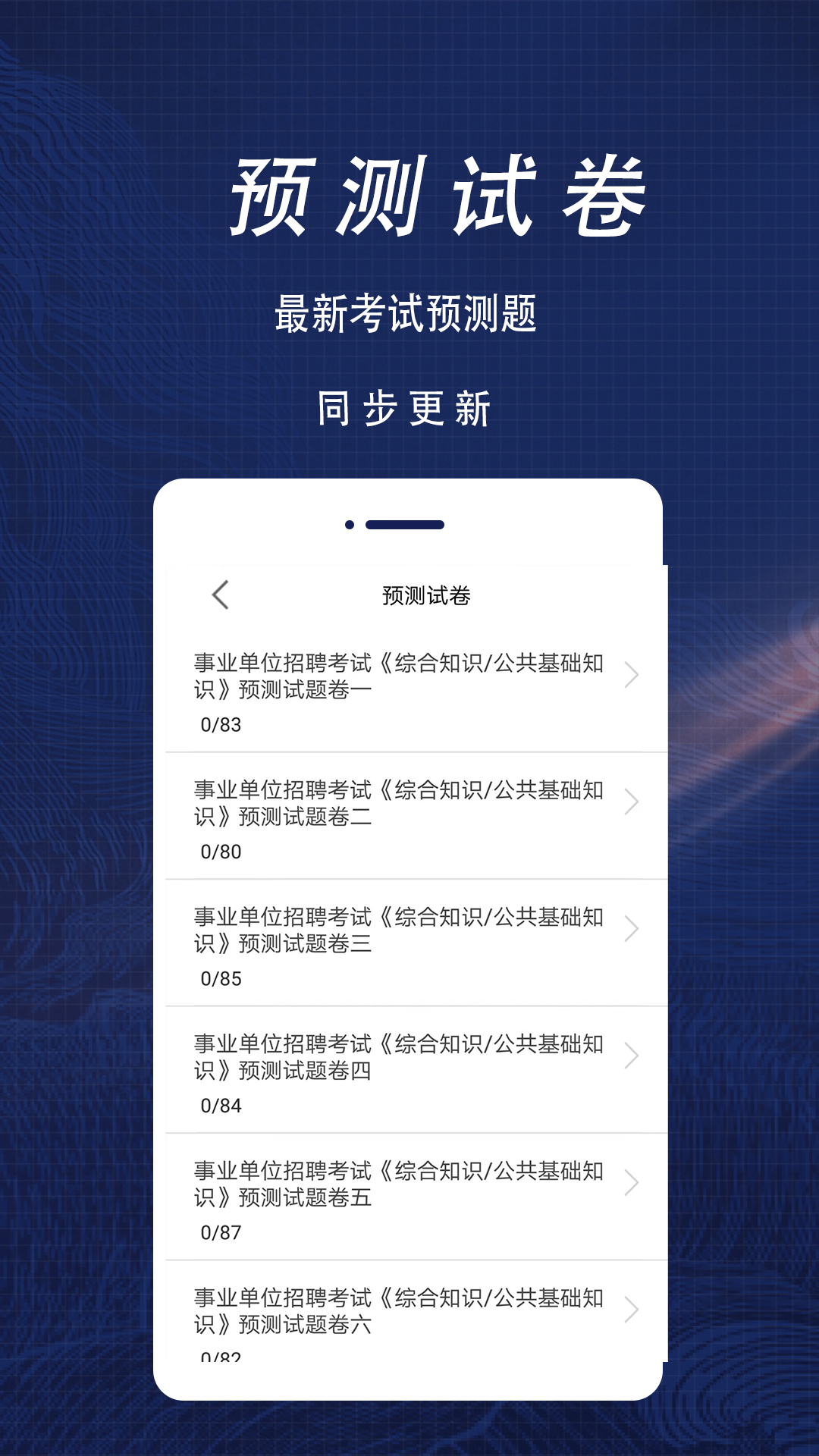 这是一款事业单位考试题库软件,汇集全国20多个省市近几年事业单位考试真题,共一百多套,87000+题,覆盖各个知识点,助你早日上岸!