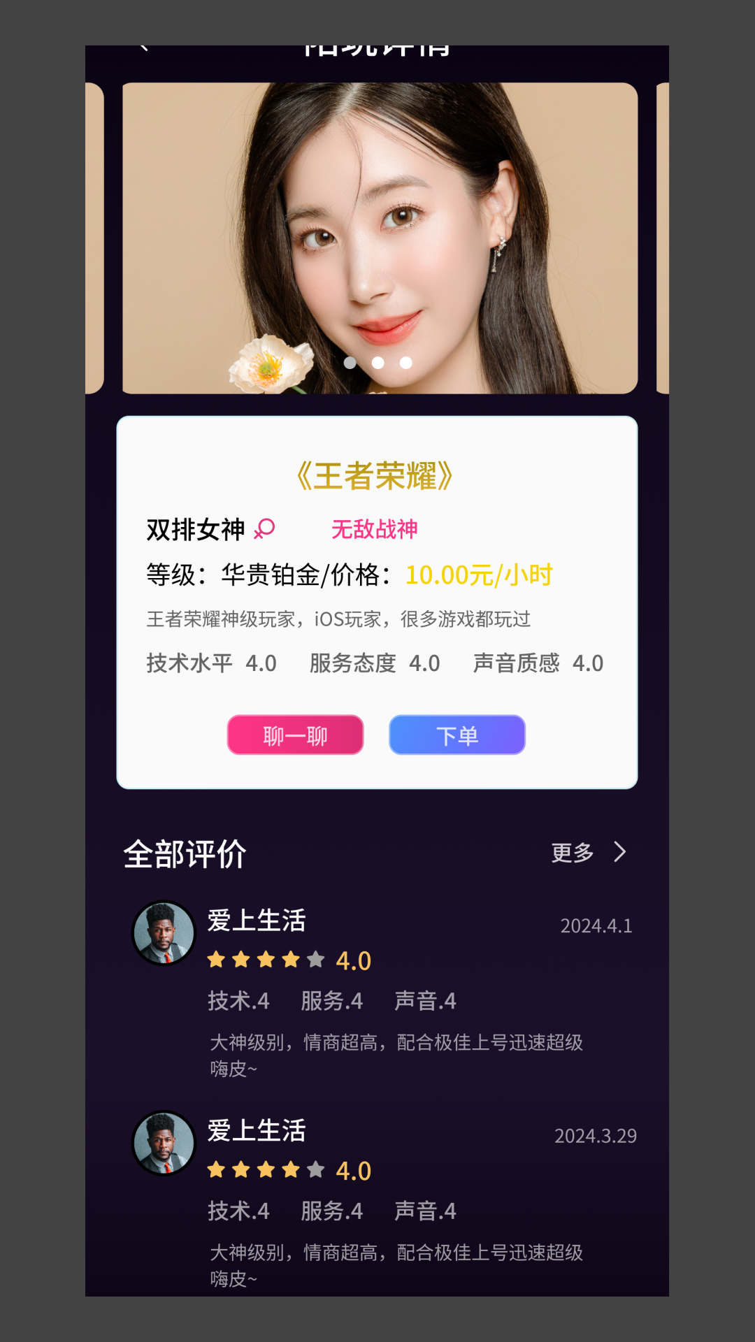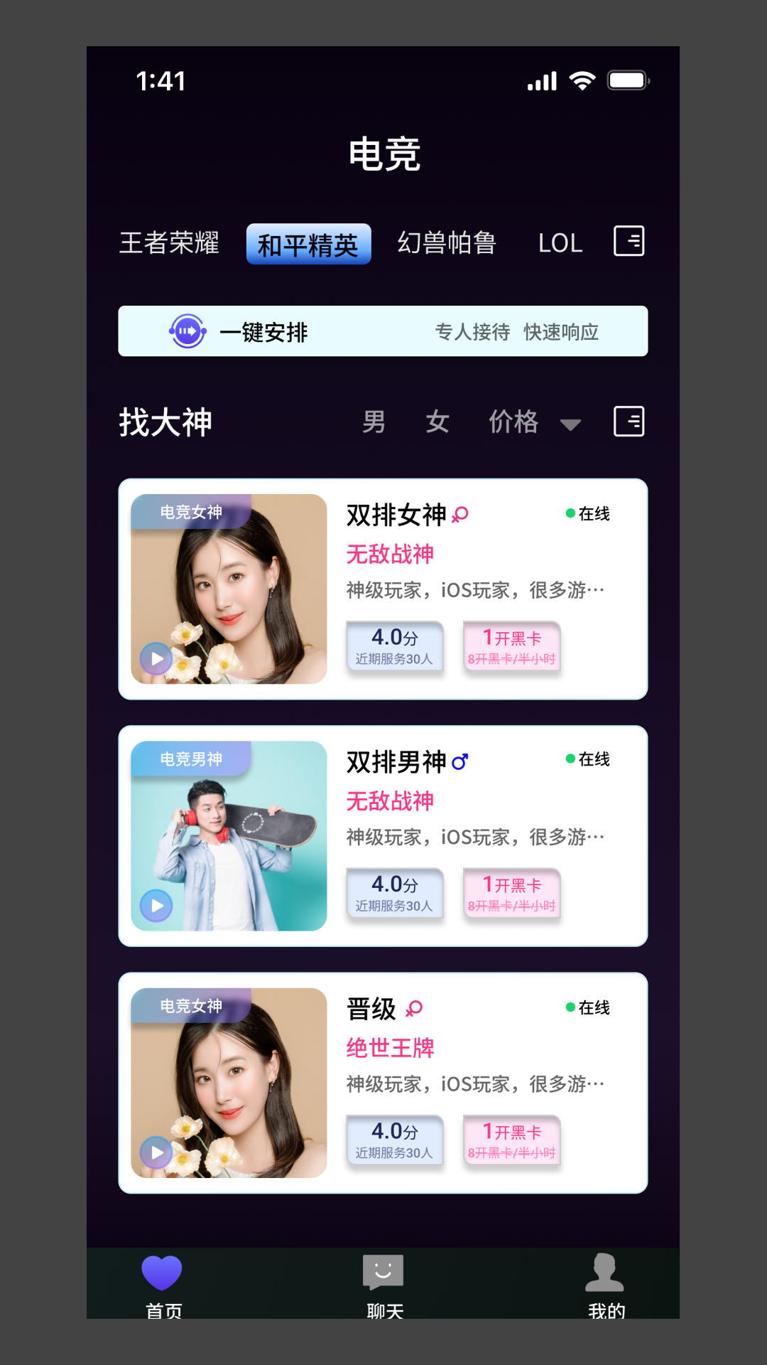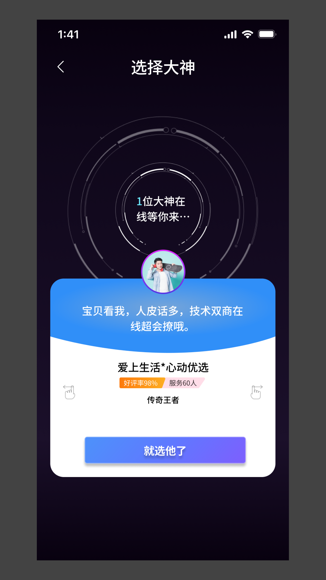 1、一键快速匹配到声音好听、技术超强、服务超好的高手!