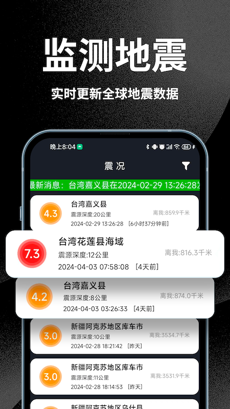 1. 地震监测:能够实时对全球的地震数据进行更新。