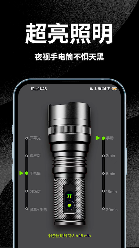 3. 超亮照明:具备夜视手电筒功能,即使在天黑的情况下也无所畏惧,可提供照明。