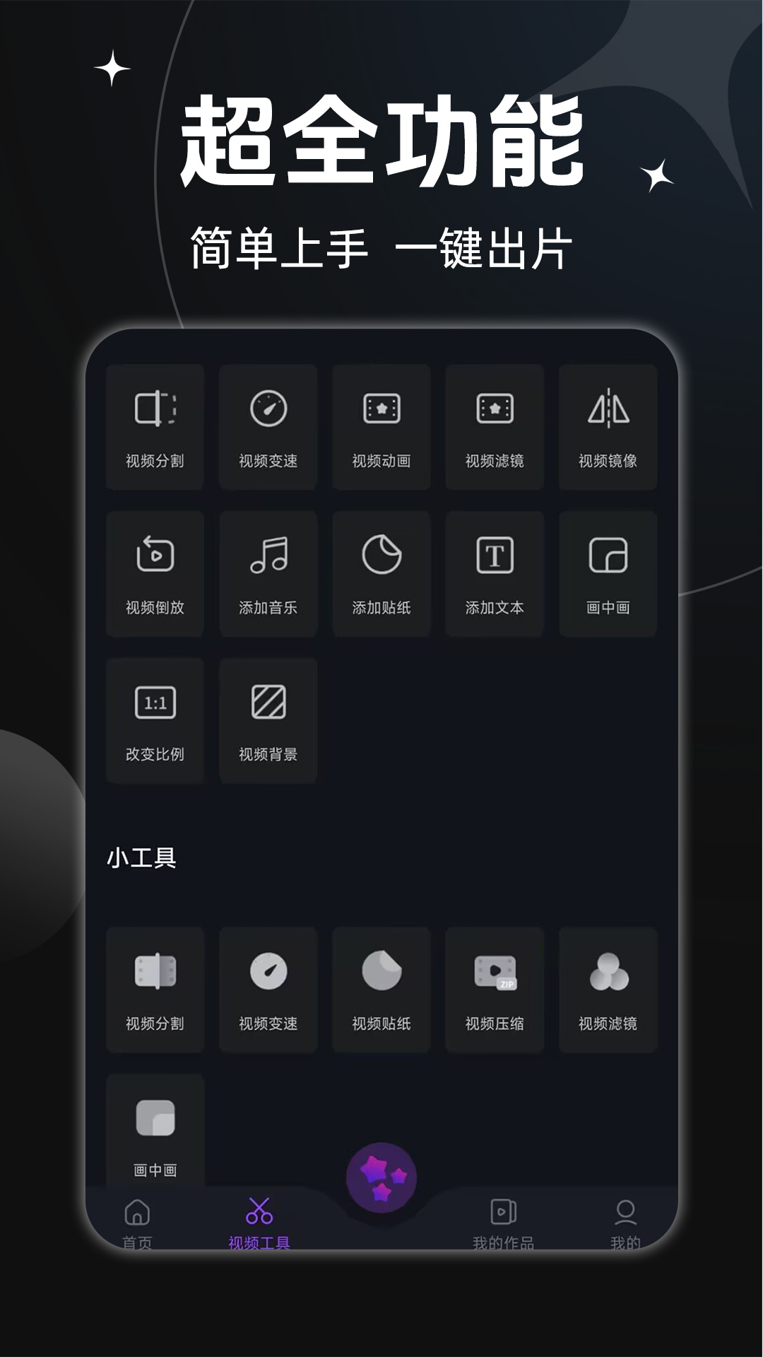 【视频编辑】超齐全的视频编辑功能,包括视频分割、视频变速、视频动画、视频滤镜、视频镜像、视频倒放、添加音乐、添加贴纸、添加文本、画中画、改变比例、添加视频背景等。