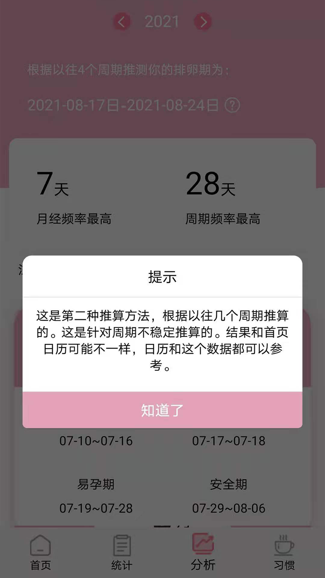 1. 依据过往的姨妈周期来推算排卵期、安全期和月经期。