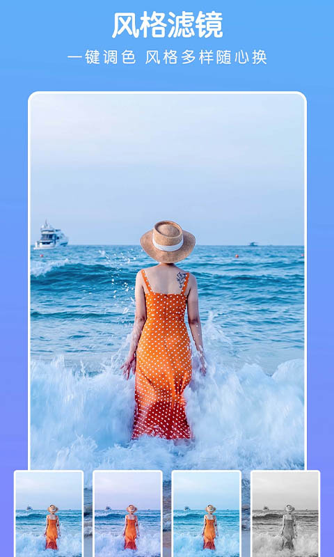 这是一款专业且功能强大的图像编辑app。在这里,你可以尽情玩转多种修图技巧,它具备其他软件所没有的独特编辑功能哦。这里有引领时尚潮流的滤镜风格,每一款滤镜都像是时尚前沿的弄潮儿,让你的照片瞬间变得时尚又独特;还有精美的贴纸素材,无论是可爱风、炫酷风还是清新风,都能满足你的需求;其操作手法简单得如同傻瓜式操作,哪怕你是修图小白,也能轻松上手。在这里,你可以尽情发挥个性,通过百变修图,亲手打造独属于自己的精彩瞬间。