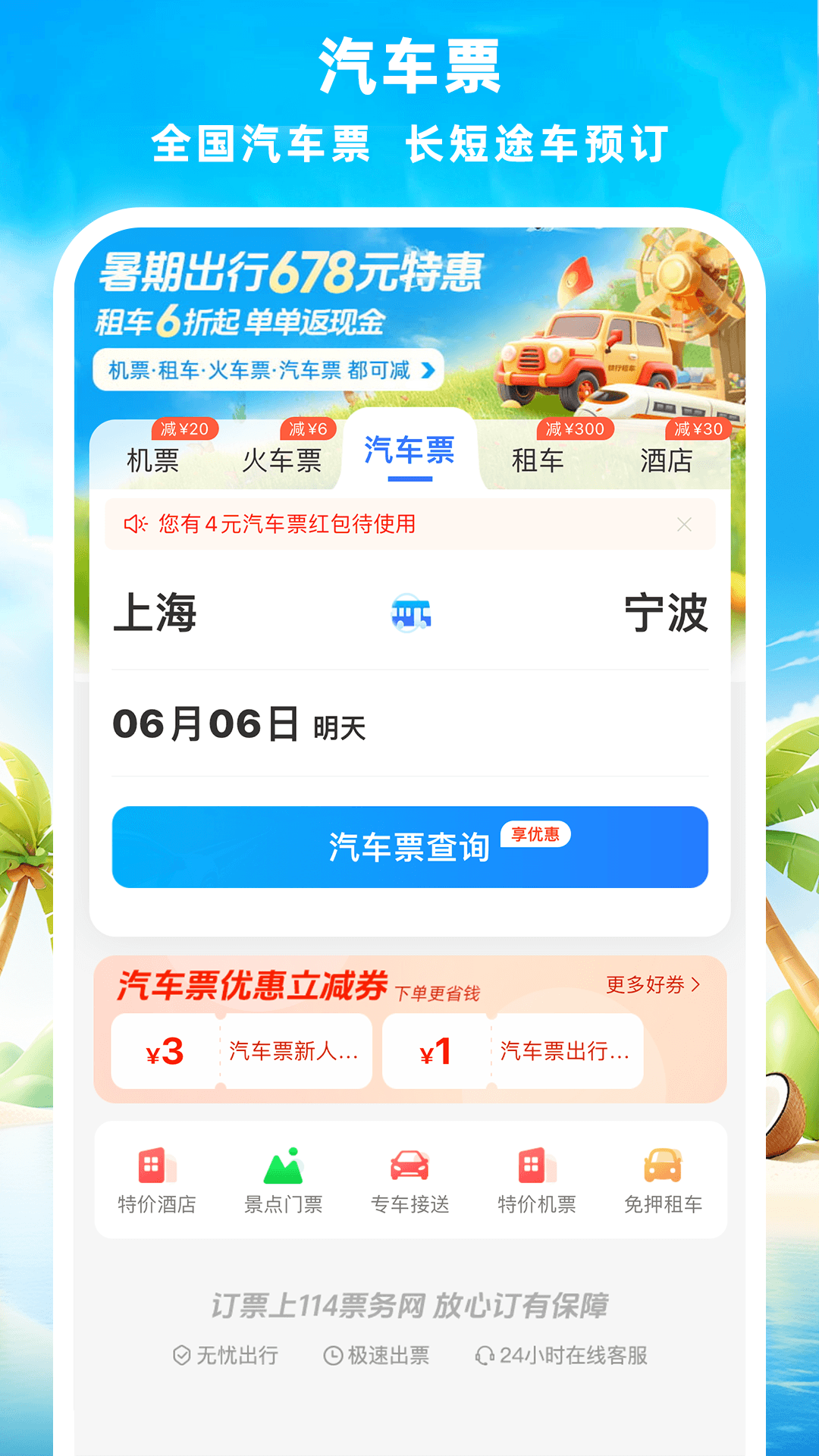 114票务是一个机票、火车票、汽车票、租车、酒店、门票一站式出行预订平台。