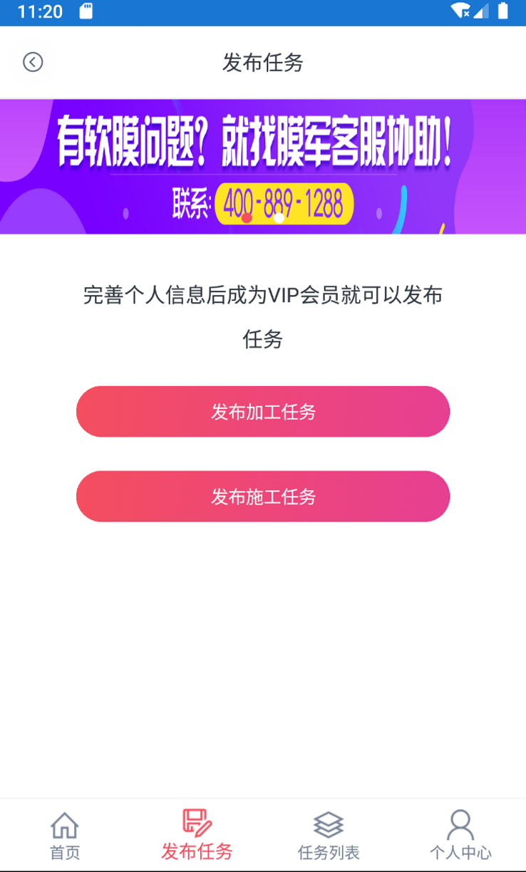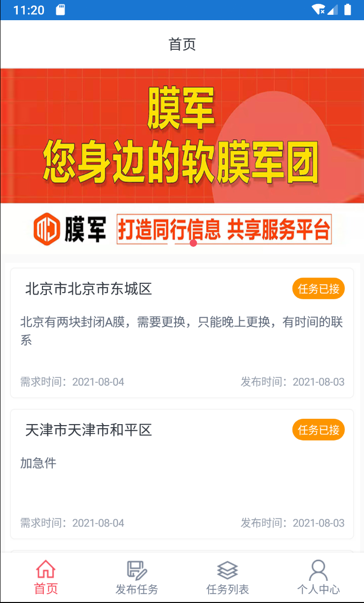 膜军APP以构建同行信息共享服务平台为目标,专为软膜类行业中的安装技师、加工厂以及相关企业提供信息的快速对接服务。在这个平台上,从事软膜行业的人员若有工程,再也不用担心找不到安装师傅;而优秀的安装技师也无需忧虑没有活儿可干。