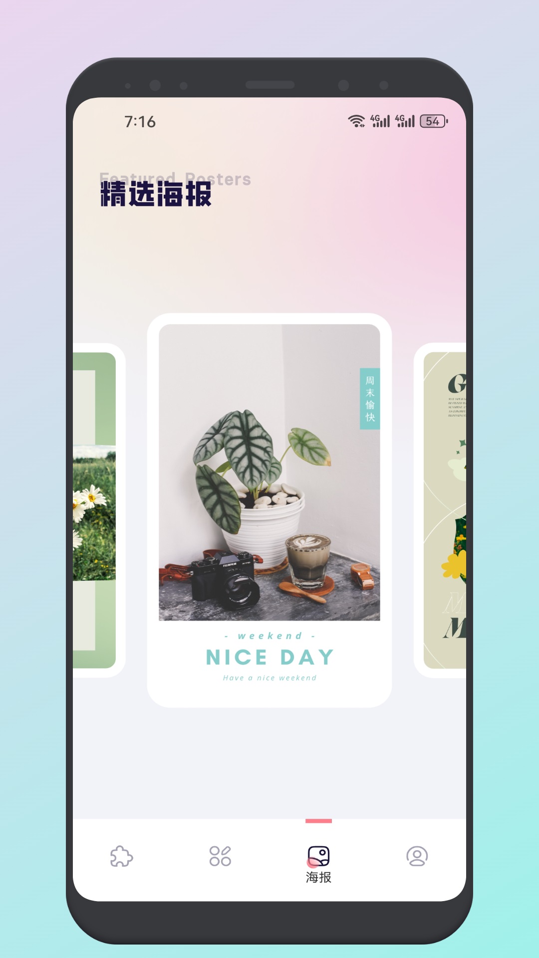 它还有精选海报功能,这里汇聚了流行的文案与色调搭配,你只需一键应用,就能随时修出同款海报,既好看又特别省时省力。
