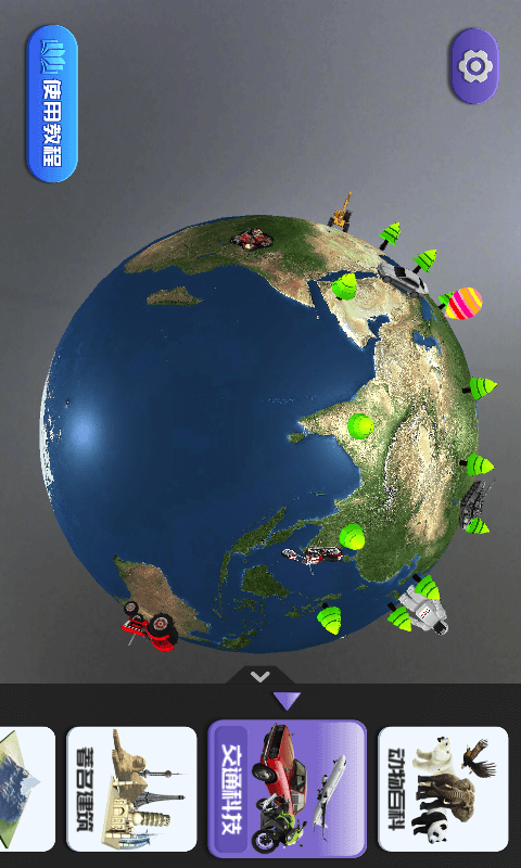 使用者仅需手持手机对地球仪进行扫描,就能体验到立体的世界。无论是动物、恐龙,还是昆虫等,都可以被召唤出来,从而进行亲密的互动。使用者无需出门,就能够领略古今中外世界各地的风土人情。