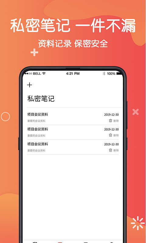 - 可使用主密码锁住应用,没有密码,任何人都无法开启该应用;