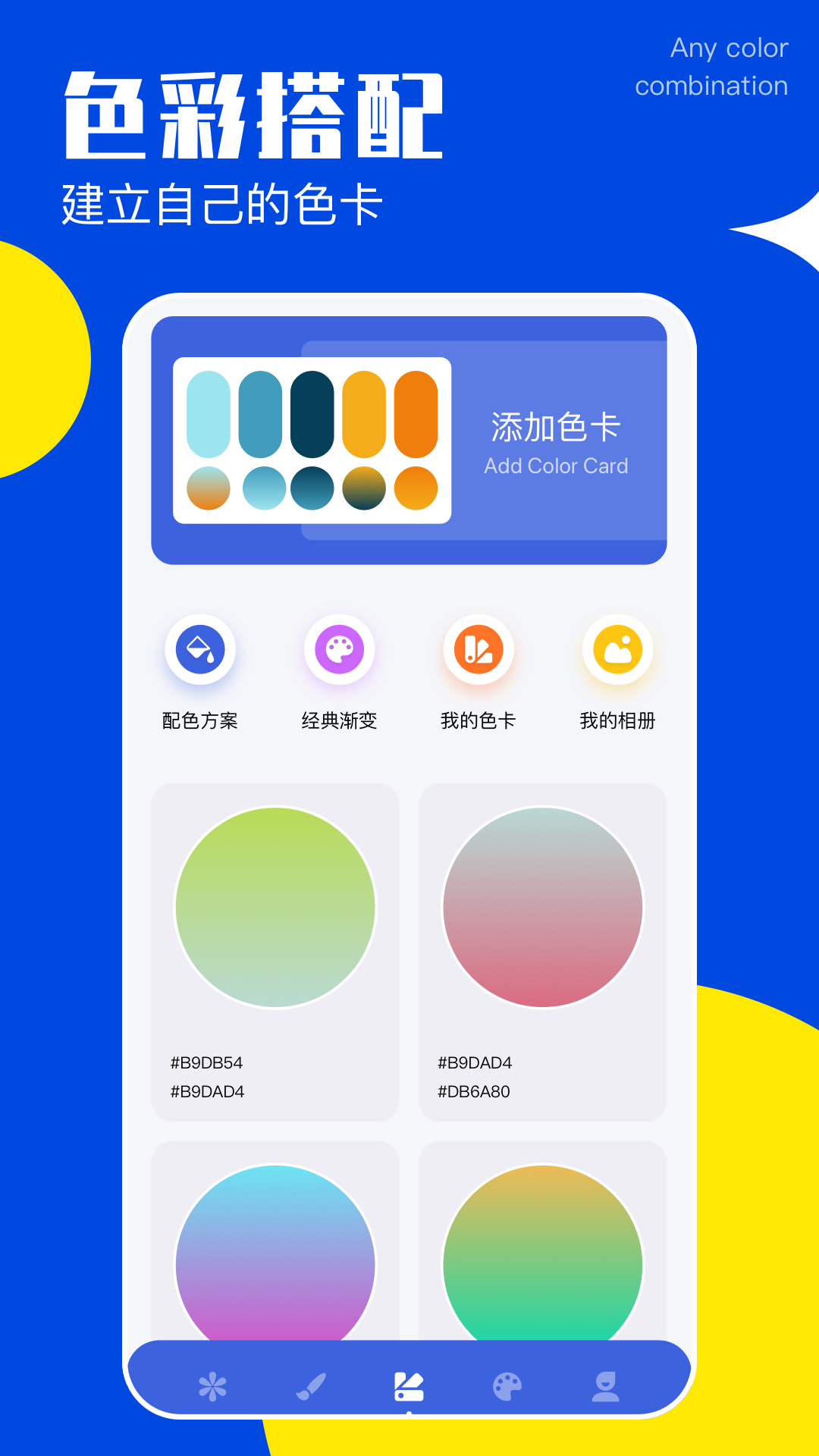 还有添加色卡功能,这个功能允许用户按照自己的想法进行色卡的自定义并且添加,进而构建属于个人的独一无二的色彩库。
