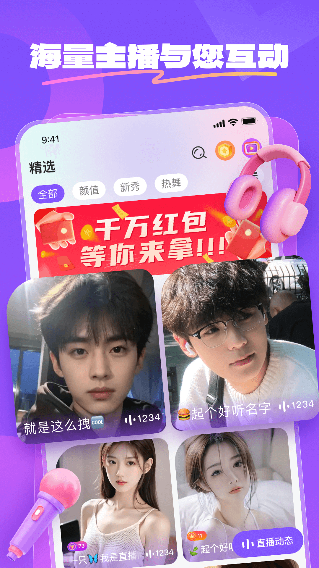 全民互动,打造全新的短视频娱乐社交玩法,随时随地进行交友。海量主播用户和你实时互动!