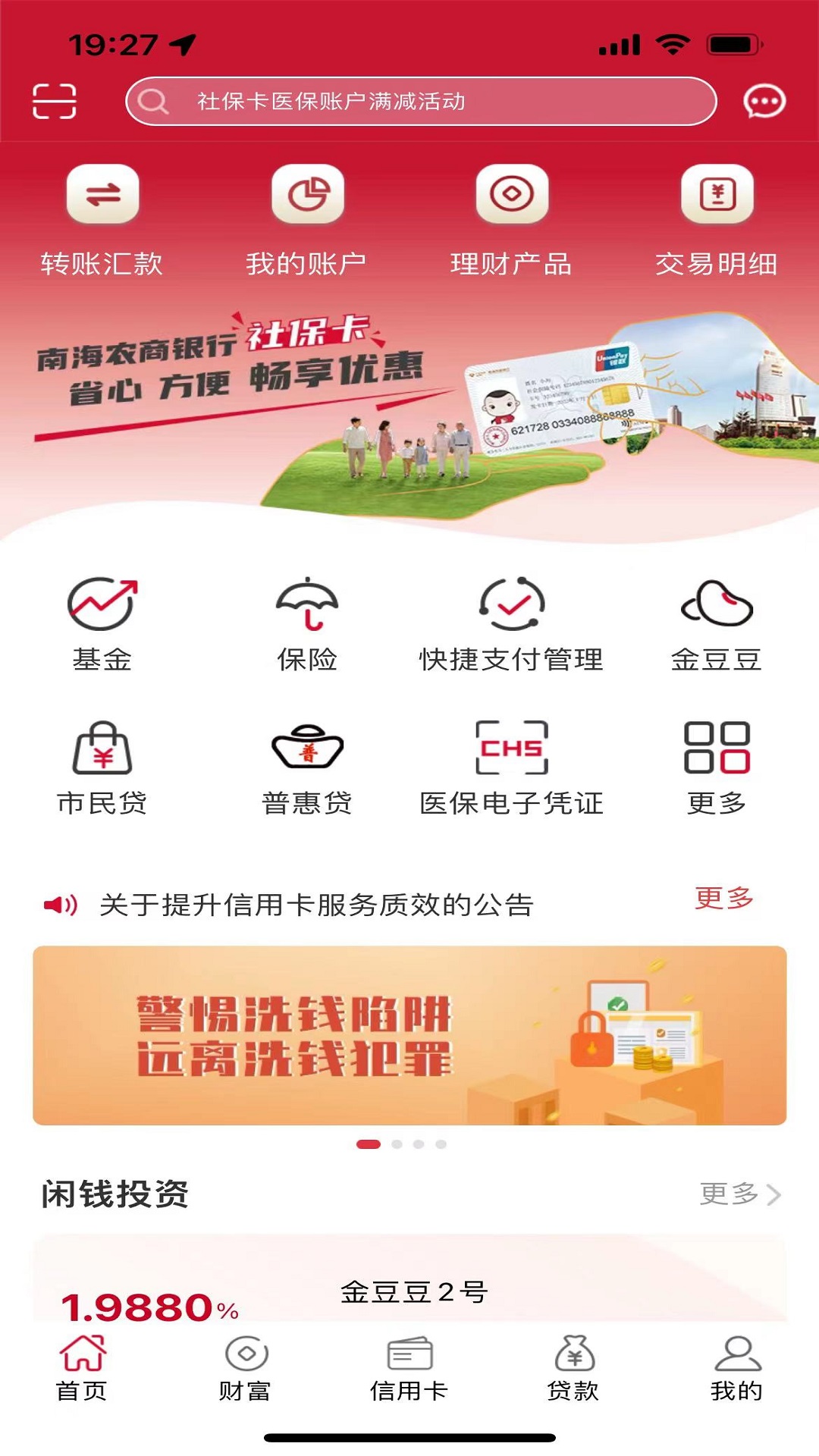 南海农商银行手机银行令你随时随地,想起就用。可实现账户查询、行内转账、跨行汇款、自助贷款、投资理财、账户挂失、存贷款利率查询、网点查询等功能,功能丰富,但同时,安全可靠,采用双因子认证,重要信息遮盖、预留信息设置等安全防范措施,让客户体验既便捷又安全的金融服务。