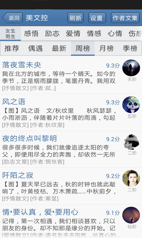 1. 文章阅读:这里涵盖多种类型的文章,包括伤感类文章,能触动你内心深处的柔软;爱情类文章,讲述那些或甜蜜或苦涩的爱情故事;亲情类文章,让你感受到血浓于水的深情厚谊;友情类文章,带你回味与朋友间的珍贵情谊;励志类文章,为你注入满满的正能量;校园类文章,带你重温校园时光的美好与青涩;还有关于人生感悟的文章,启发你对生活的思考。