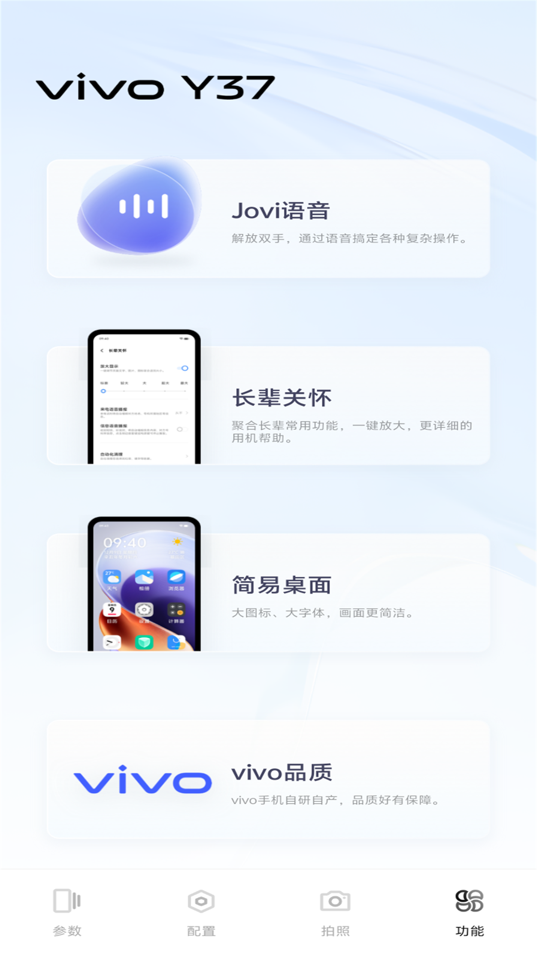 此应用为vivo终端店面导购所用应用,用于向消费者介绍和演示手机中的功能。
