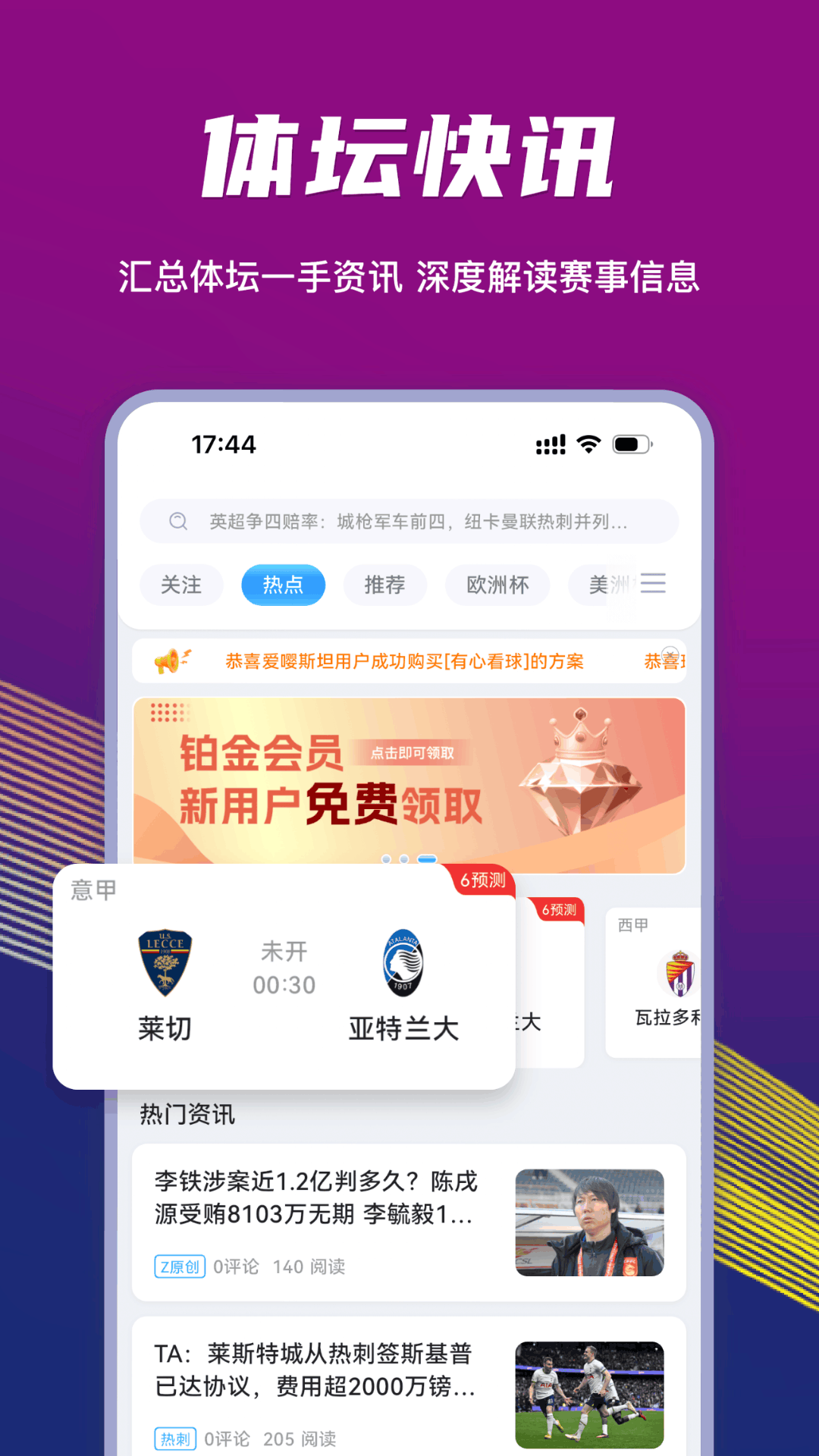 【体育快讯】:体育快讯汇集了体坛主流体育资讯,让球迷用户短时间掌握自已喜爱的球队、球员动态;