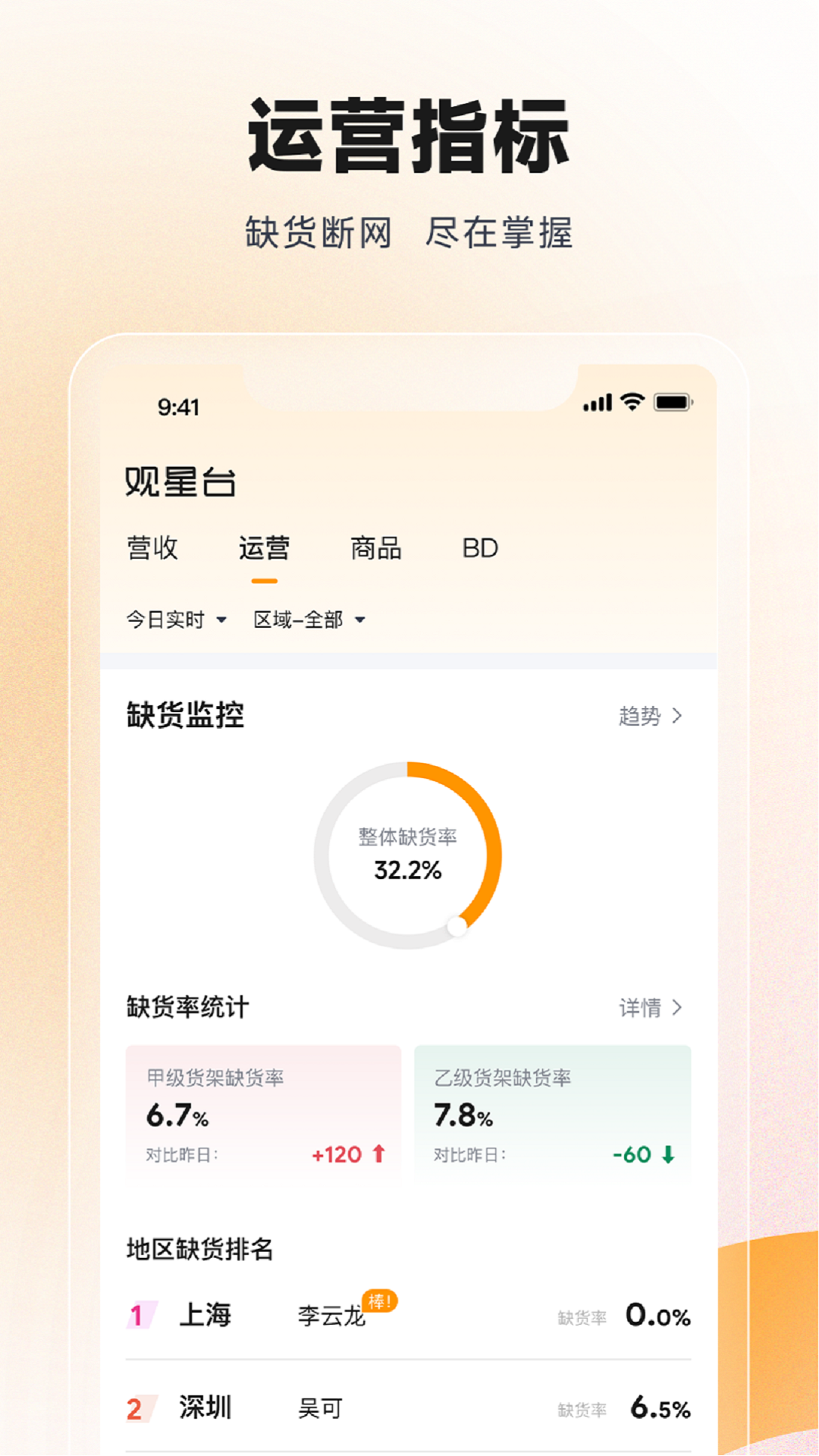 观星台是针对移动平台推出的一款数据可视化经营分析工具,通过此移动客户端,您可以充分利用碎片时间,不局限于场所,随时随地,关注分析经营数据,动态监控关键指标,让经营信息垂手可得,让决策分析尽在掌握。