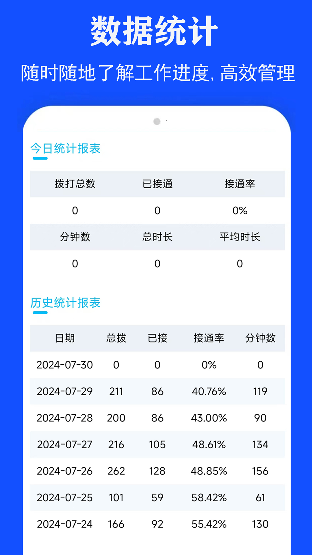 4:外呼数据统计更精准:秒、分、接通率、呼叫总数、录音