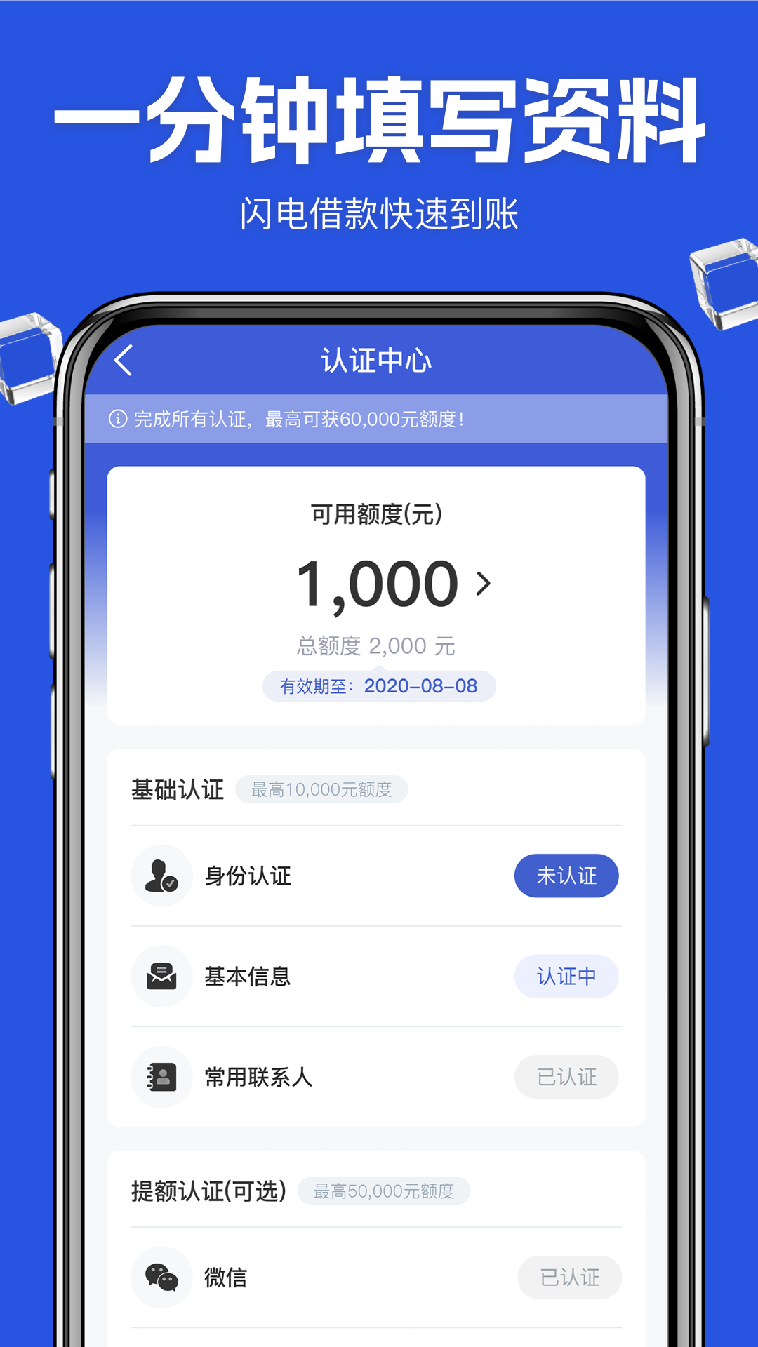 1.轻松申请:自助式申请流程,手机+身份证即可申请,简单操作5分钟,1小时内完成审核(借款额度、放款时间等以实际审批为准);