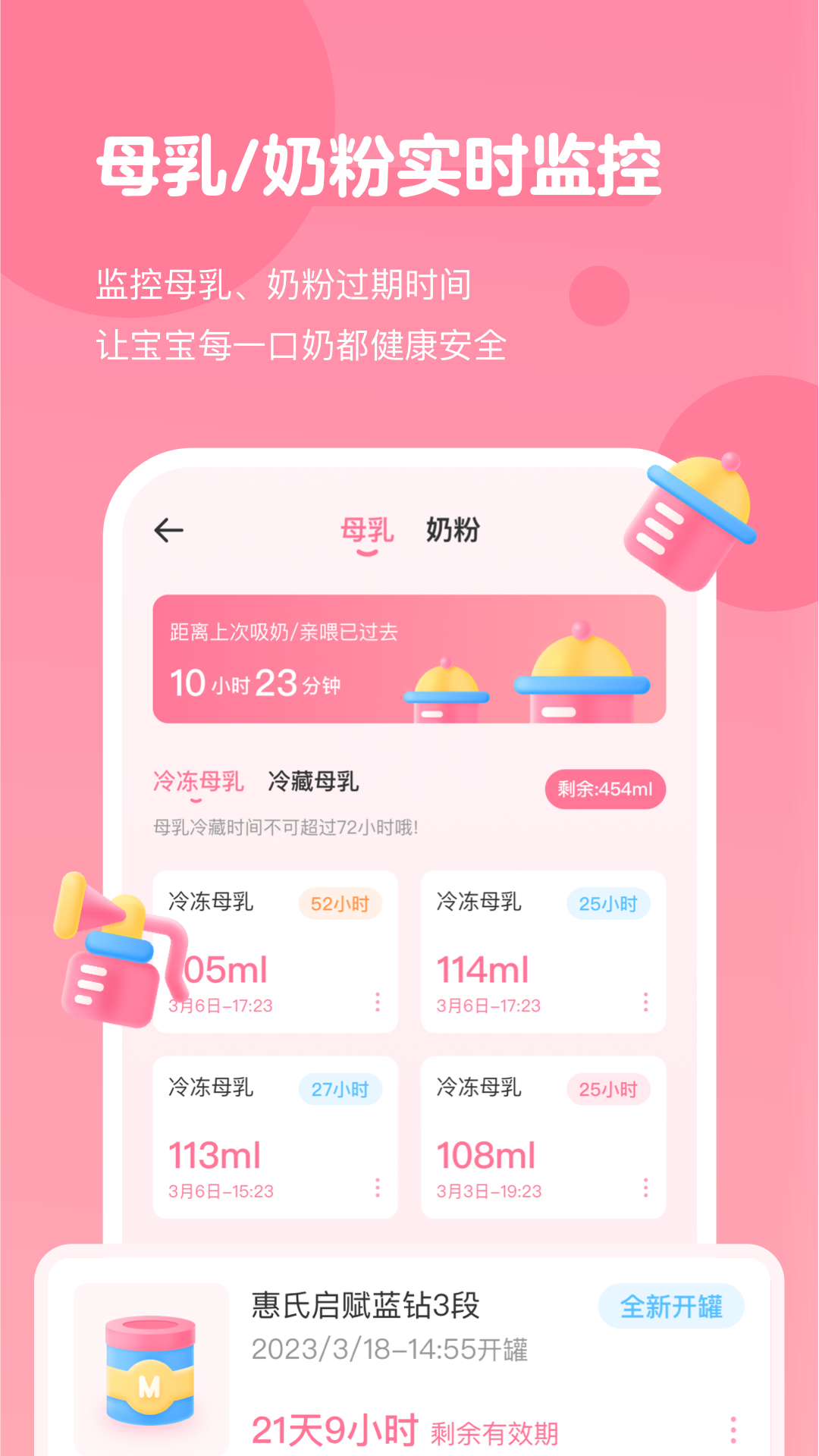 +更多数据:像吸奶器、母乳/奶粉存量、辅食等多种与喂养相关的数据也都可以被记录。