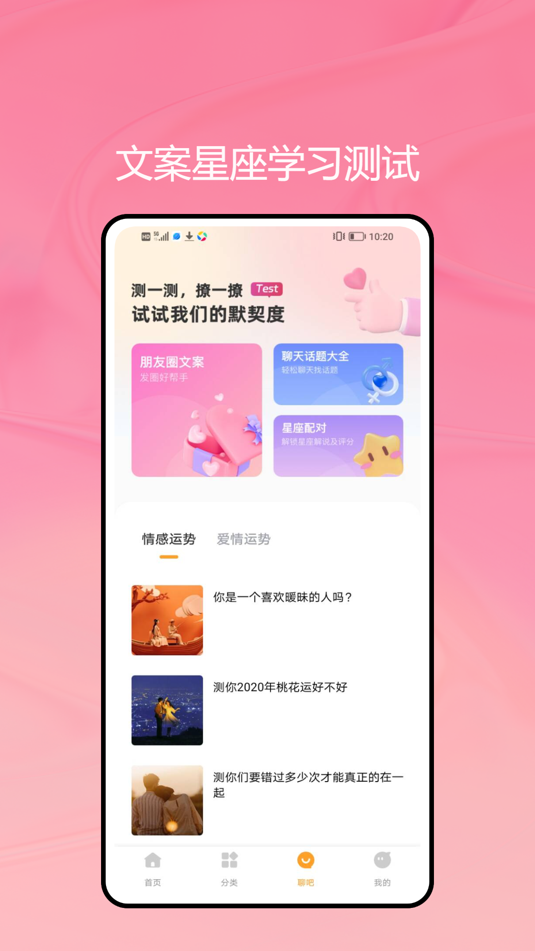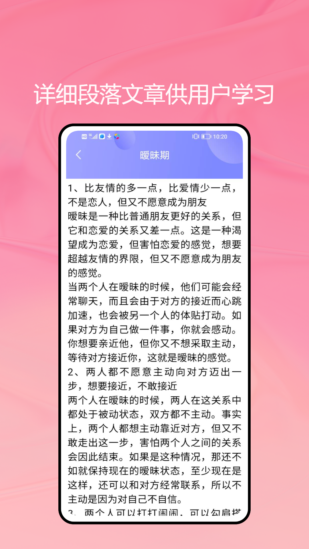 恋爱就像是一门深奥的学问,是需要我们持续去学习并且不断成长的。我们这个应用会定期更新恋爱资讯,这些资讯包含很多方面呢,像情感分析,它能帮助你深入了解自己和对方的情感状态;星座配对,从星座的角度给你一些恋爱的参考;还有恋爱心理学,让你明白恋爱中的各种心理现象。不管你是刚刚涉足恋爱的新手,还是已经在感情里摸爬滚打很久的老手,在这里都能找到对你有帮助的信息和建议。让我们一同探寻爱情的秘密,让自己变得更加优秀。