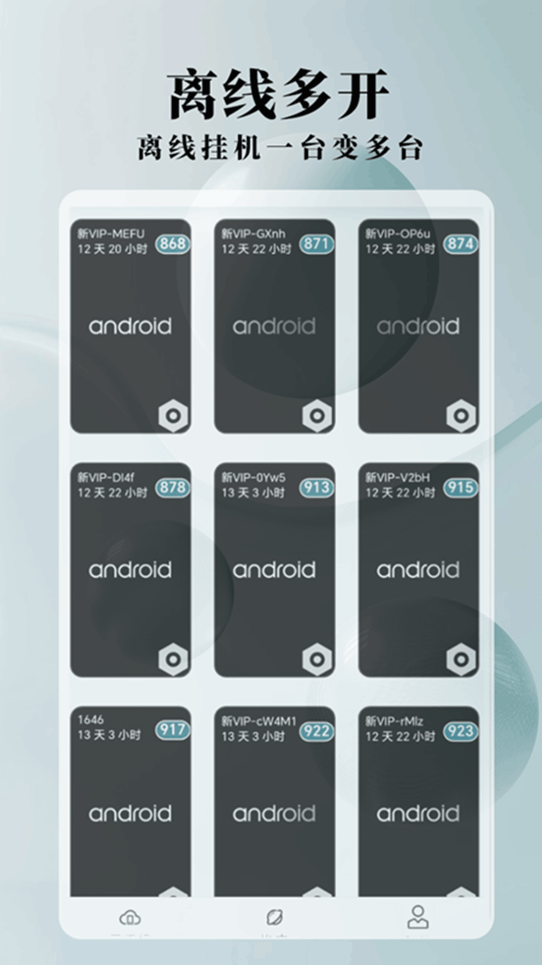 2. 节省内存和流量,一部手机就能运行多个游戏。多台云手机之间数据相互隔离,各自稳定运行互不干扰,实现游戏多开,并且操作便捷,只需一键即可完成操作。