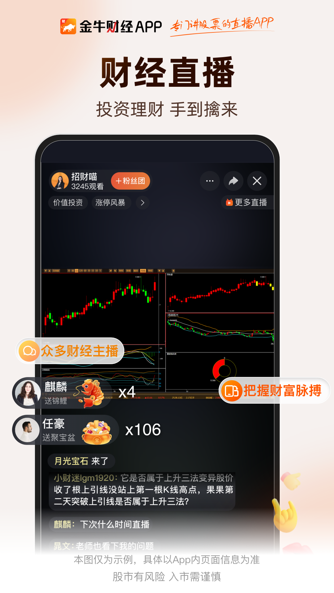 财经直播:众多财经主播在直播间分享各类方法与经验,深入分析实时热点,挖掘行业赛道,助力用户避开风险雷区,精准捕捉投资机会。