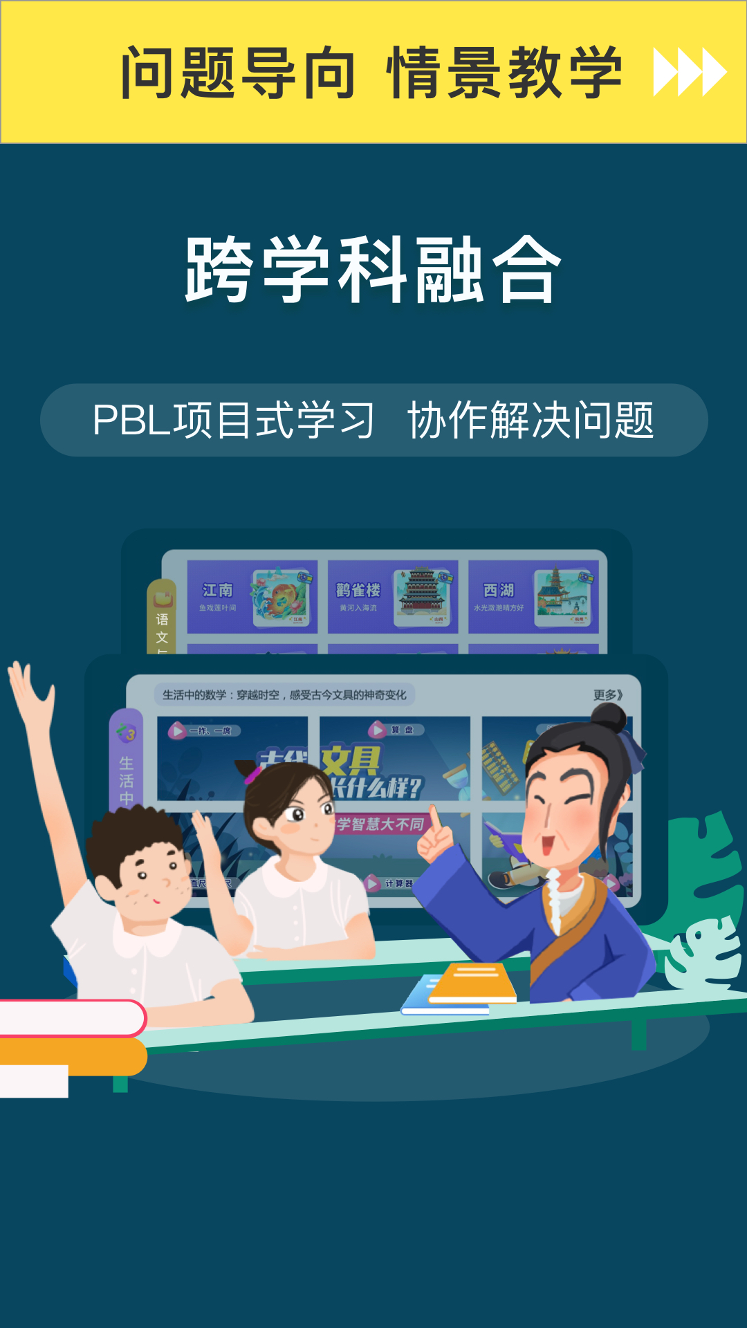 以【语文/数学】作为突破口,融入新的教学理念与方法,例如采用问题驱动、情景化教学以及探究式学习的方式,为在线学习注入新的活力。