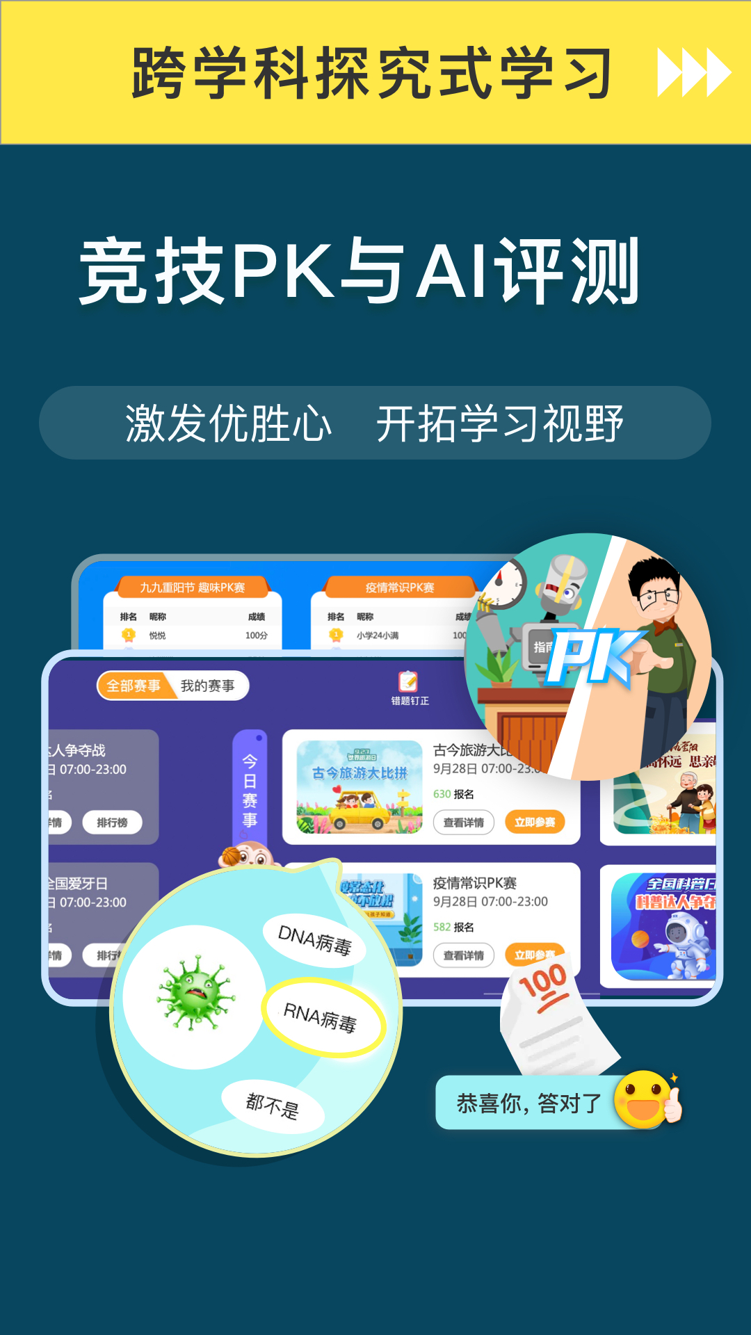 有热点时事、学科百科类的【知识竞赛】,全国的孩子们能够在同一个平台上进行竞技,这样可以极大地激发孩子们竞争求胜的心。同时还有人人都能参与的【课文朗读配音秀】,通过AI评测打分,让每个孩子都有展示自我的机会。