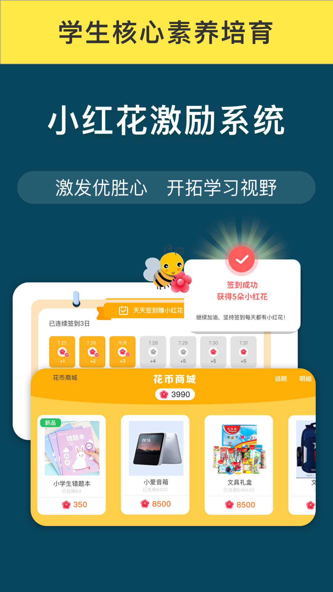对孩子的在线学习行为进行实时奖励,以此引导孩子进行持续、深入且体系化的在线学习。
