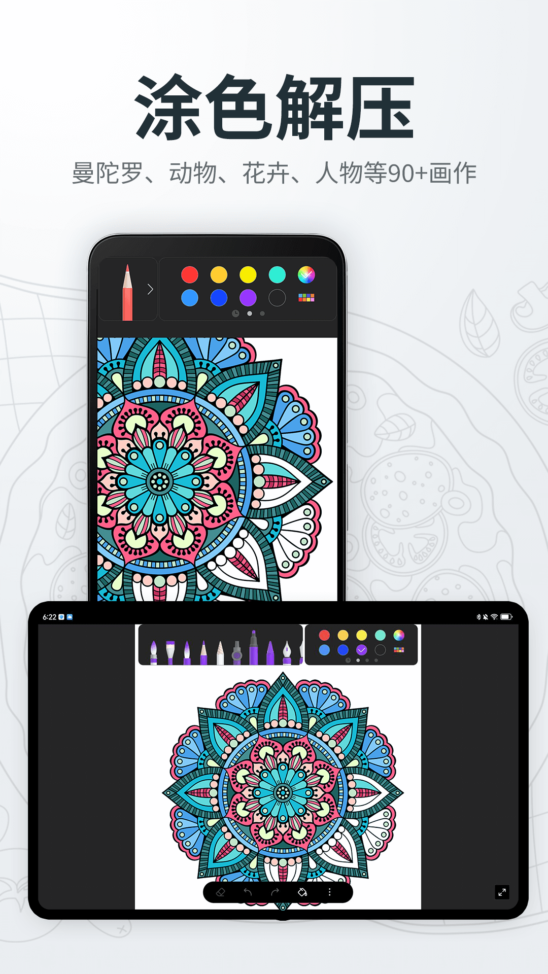 · 提供各种着色书页,您可以从中尽情地进行着色创作,还能从众多出色的模板里挑选自己喜欢的。