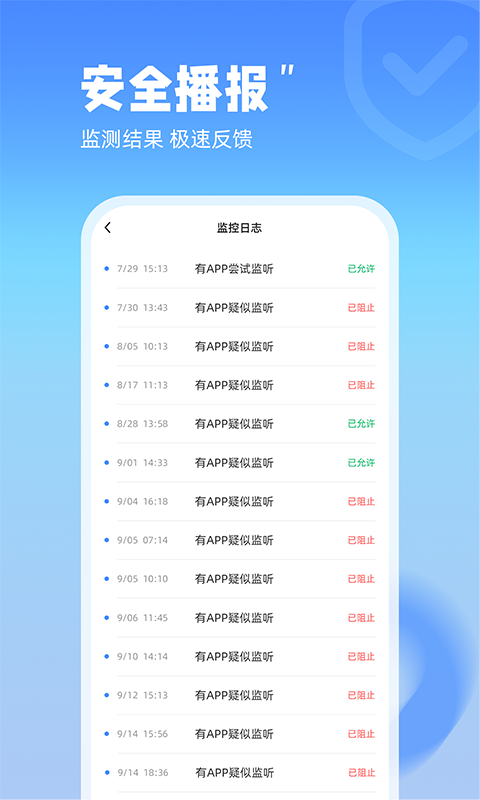 【安全·手机监听拦截】借助先进的云端检测技术,它可以智能地拦截监听行为,过滤诈骗和垃圾信息,对监控行为进行校准,一旦发现风险就及时提醒您。