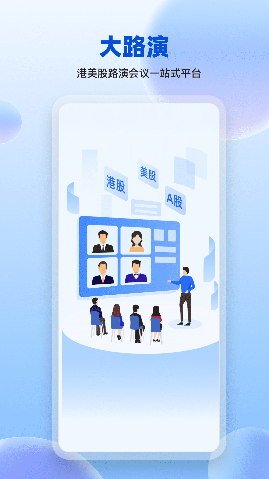 大路演(Roadshowing.com),是一家专注于财经路演直播的平台。这里汇聚了港美股(包括A + H、ADR等)上市公司的各类会议,像业绩会、新股说明会、投资者大会、股东大会、正向路演、反向路演等,并且提供这些会议的现场直播以及录播回放。