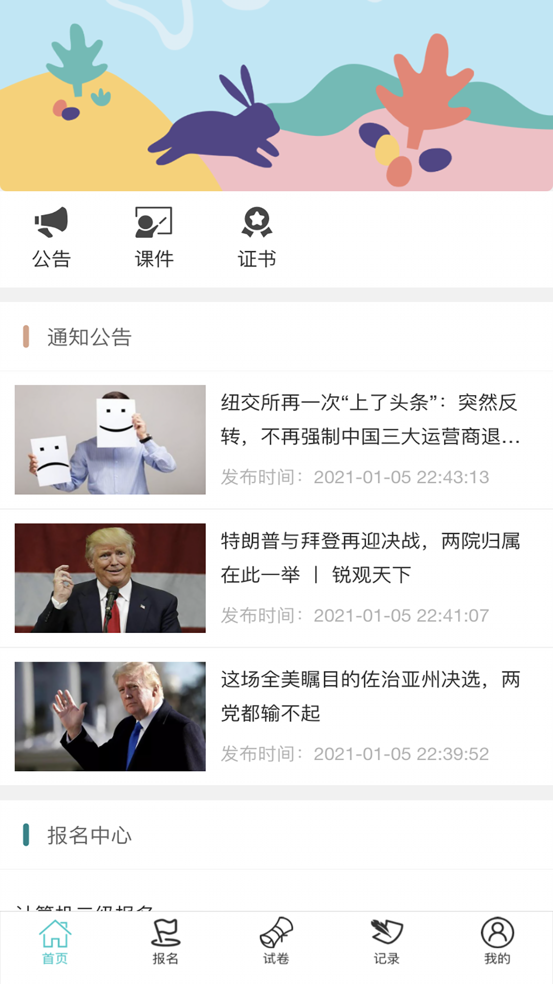 报名:管理员发布的报名通知,参加报名的员工可以按时参加后续的考试