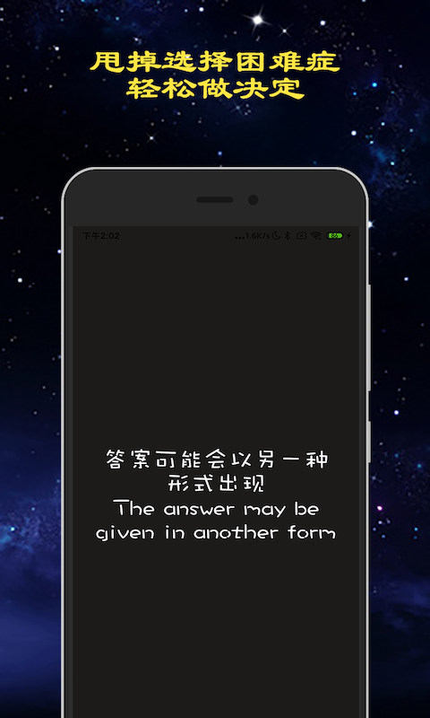 答案之书具有神秘力量,它能通过给人强烈的心理暗示使人内心世界与某件事物产生共鸣,让你瞬间下定决心!